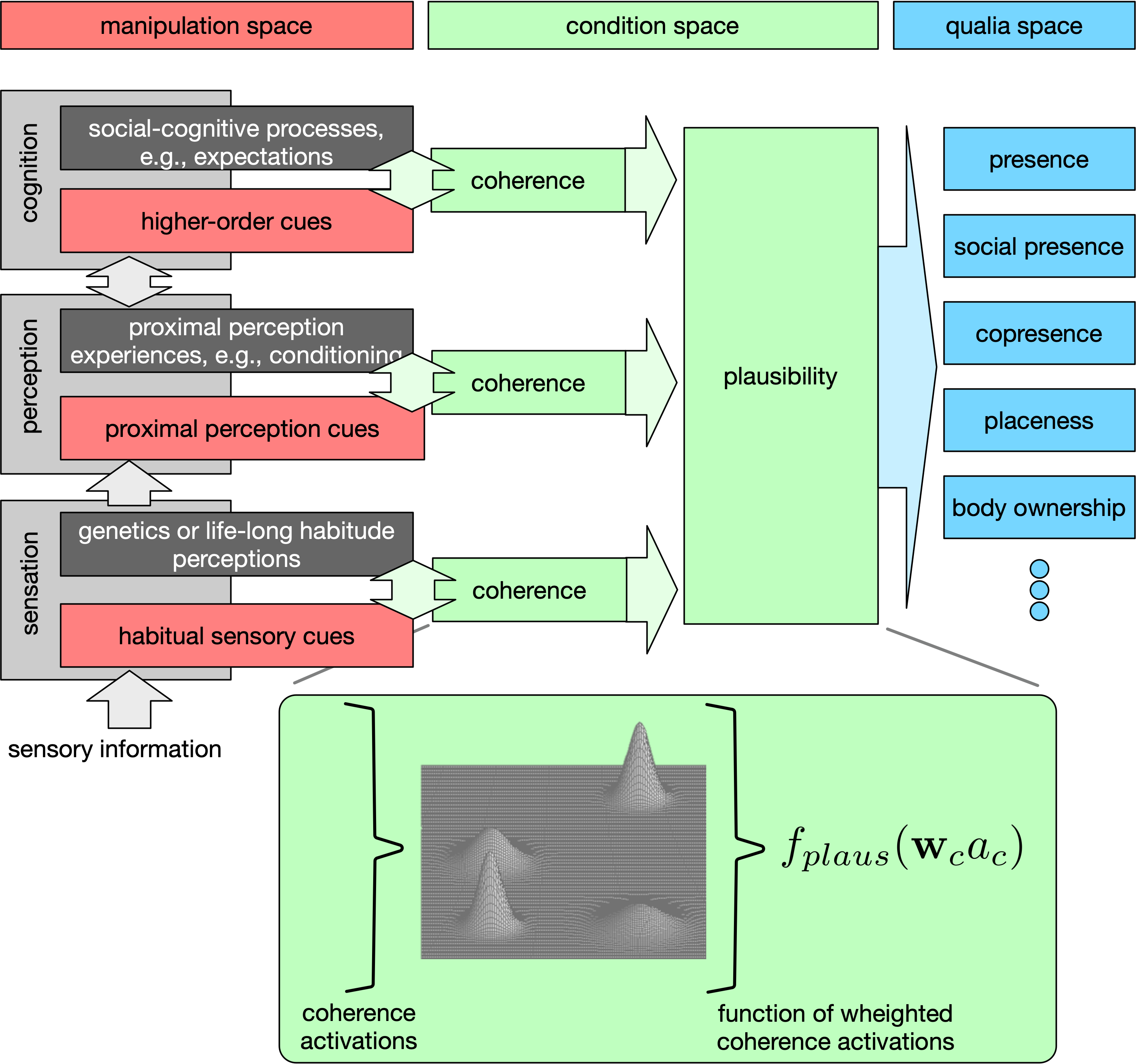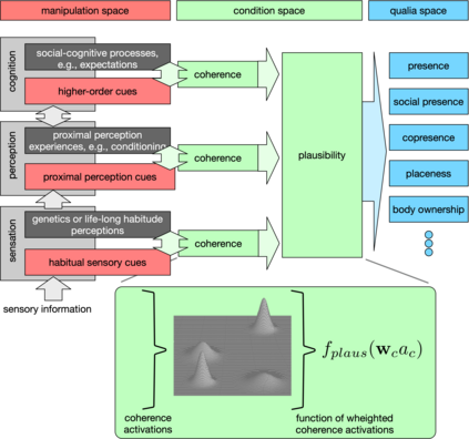翻译:存在通常被认为是描述在计算机产生的(虚拟)或计算机中介环境中的主观感觉的最重大夸大。 识别和分离两种正正统存在组成部分(即,地点错觉和可信幻觉)是一个公认的理论模型,描述虚拟现实(VR)的经验已有一段时间了。 在这个模型中,沉浸是提出地方错觉的一个拟议因素。 最近,共性和社会存在幻觉扩展了这一模型,提出了一致性,作为造就假象的一个促进因素。 这些因素努力(客观地)确定和分离一种经验的可测量特征,例如,允许受控操纵VR经验的系统属性。 这个观点文章挑战了这种面向虚拟现实(VR)的理论。 首先,我们认为,一个地方错觉不能成为描述虚拟、放大和混合真实(VR、AR、M、或XR短时间)的更广泛范围的主要构思。 其次,我们提出,不存在可信的假象,而只是可以令人信服的,我们最终提出了一个稳定的空间错觉,成为了我们所定义的视觉和真实性最终结果。