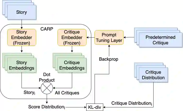 翻译:现有的故事偏好控制方法使用迅速的工程,这种工程是劳力密集的,而且往往不一致。它们还可能使用逻辑管理方法,这种方法要求存在附加注释的数据集,以达到理想的属性。为了解决这些问题,我们首先培训一个对比的双相码模型,以便将故事与相应的人类评论、名为CARP的CARP的人类评论联系起来,建立一个通用目的偏好模型。这随后被用作奖励功能,通过强化学习微调一种基因化语言模型。然而,简单微调一种配有对比性奖赏模型的基因化语言模型并不总是可靠地产生能够产生符合用户喜好的故事的生成系统。为了提高故事的活力,我们用迅速学习技术进一步微调对比性奖赏模型。然后进行一项人类参与者研究,将我们整个系统的几代人、缩略图和两个基线进行比较。我们显示,完全微调试管的结果是故事生成者喜欢的LM 20 和基于逻辑的模型方法。这鼓励了人类对比性学习一般偏好方法。
