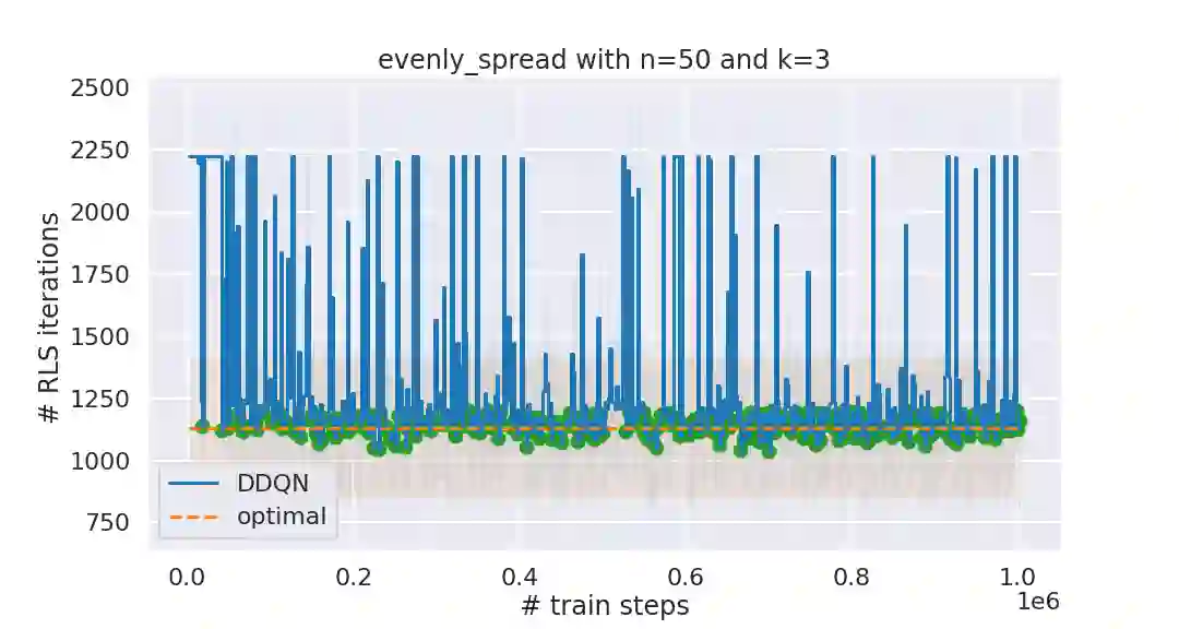 翻译:长期以来人们一直认为,演进算法和其他随机搜索理论的性能可以从非静态地选择指导其优化行为的参数中受益。因此,确定飞行(“参数控制”)或通过专门培训过程(“动力算法配置”)的适当配置的机制是现代进化计算框架的一个重要组成部分。解决动态参数设置问题的若干方法存在,但我们几乎无法理解哪些应用更适合。在古典基准中,具有已知地面真理的问题收集可以在这方面提供非常有意义的洞察力。不幸的是,有深奥的控制政策的环境非常罕见。我们知道哪些参数设置尽量减少预期运行时间的少数例外之一是“领导一”问题。我们通过分析最佳控制政策来扩展这一基准,该控制政策只能从特定组合的可能值中选择参数。这也使我们能够计算出某个特定大小的最佳参数组合。我们通过分析动态算法的DDQN强化学习方法的行为来证明我们基准的有用性。