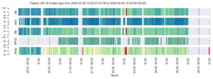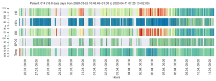 翻译:对有效可视化进行了评估,以揭示多传感器或实时可实时磨损装置的相关健康模式,这些装置记录了因COVID-19而住院的病人的生命迹象。此外,对与可磨损的健康数据可视化相关的具体挑战进行了调查,如合规问题导致的数据质量波动、设备充电所需时间和技术问题等。作为一个主要用途案例,我们检查了该技术获得的生命迹象中可见的相关健康模式的检测和通信情况。定制的热图和条形图用于具体突出生命迹象中与医学相关的模式。对两名医生、一名临床项目经理和七名健康数据科学研究人员进行了调查,以评估可视化方法。从84名住院的COVID-19病人的数据集中,我们提取了一个典型的COVID-19病人历史样本,并以显示两个值得注意的病人的健康史的可视化数据为基础。视觉化显示在降低患者健康状况方面是有效、简单和不直觉的。对于受时间限制并负责许多病人的临床工作人员来说,这种可视化方法可以成为使病人能够连续地获得并监测其健康状况的有效工具。