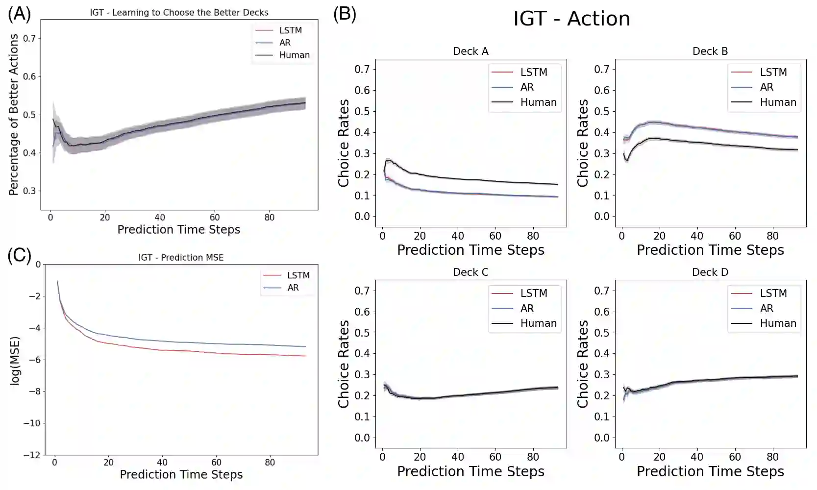 翻译:与传统的时间序列不同,人类决策的动作序列通常涉及许多认知过程,如信仰、愿望、意图和思想理论,即其他人的想法。这样可以预测人类决策有挑战性,需要对其内在心理机制进行敏锐处理。我们在此建议使用基于长期短期记忆网络(LSTM)的经常性神经网络结构,以预测参与游戏活动的人类主体所采取行动的时间序列,这是本研究领域首次应用此类方法。在这项研究中,我们从循环囚犯的8种出版文献中收集了人类数据,这些文献包括168,386项个别决定和后处理,它们成为8,257个行为轨迹,每个参与者都有9个动作。同样,我们整理了来自Iowa Gambling任务10项不同出版的研究的95个动作轨迹,这些实验涉及健康的人类主题。我们培训我们的预测网络掌握了行为数据,并展示了在预测人类决策网络的更大规模分析中采用的最新方法的优势,其中每个参与者都展示了我们可能执行的实验室模型,其中的赌情图示了我们可能执行的赌场图的多式阵列。