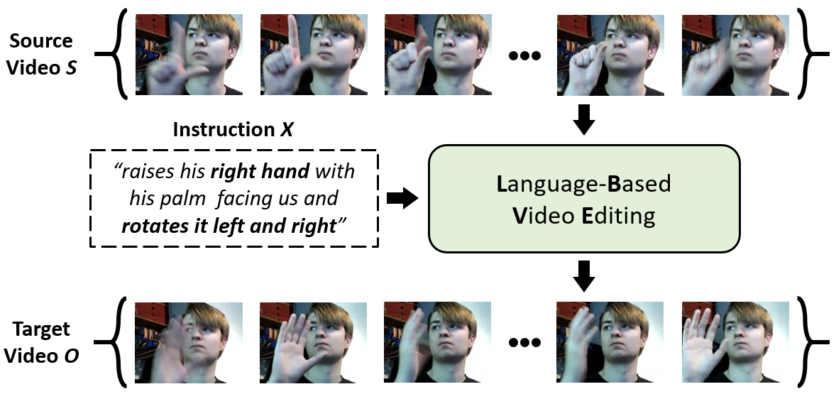 Video editing tools are widely used nowadays for digital design. Although the demand for these tools is high, the prior knowledge required makes it difficult for novices to get started. Systems that could follow natural language instructions to perform automatic editing would significantly improve accessibility. This paper introduces the language-based video editing (LBVE) task, which allows the model to edit, guided by text instruction, a source video into a target video. LBVE contains two features: 1) the scenario of the source video is preserved instead of generating a completely different video; 2) the semantic is presented differently in the target video, and all changes are controlled by the given instruction. We propose a Multi-Modal Multi-Level Transformer (M$^3$L-Transformer) to carry out LBVE. The M$^3$L-Transformer dynamically learns the correspondence between video perception and language semantic at different levels, which benefits both the video understanding and video frame synthesis. We build three new datasets for evaluation, including two diagnostic and one from natural videos with human-labeled text. Extensive experimental results show that M$^3$L-Transformer is effective for video editing and that LBVE can lead to a new field toward vision-and-language research.