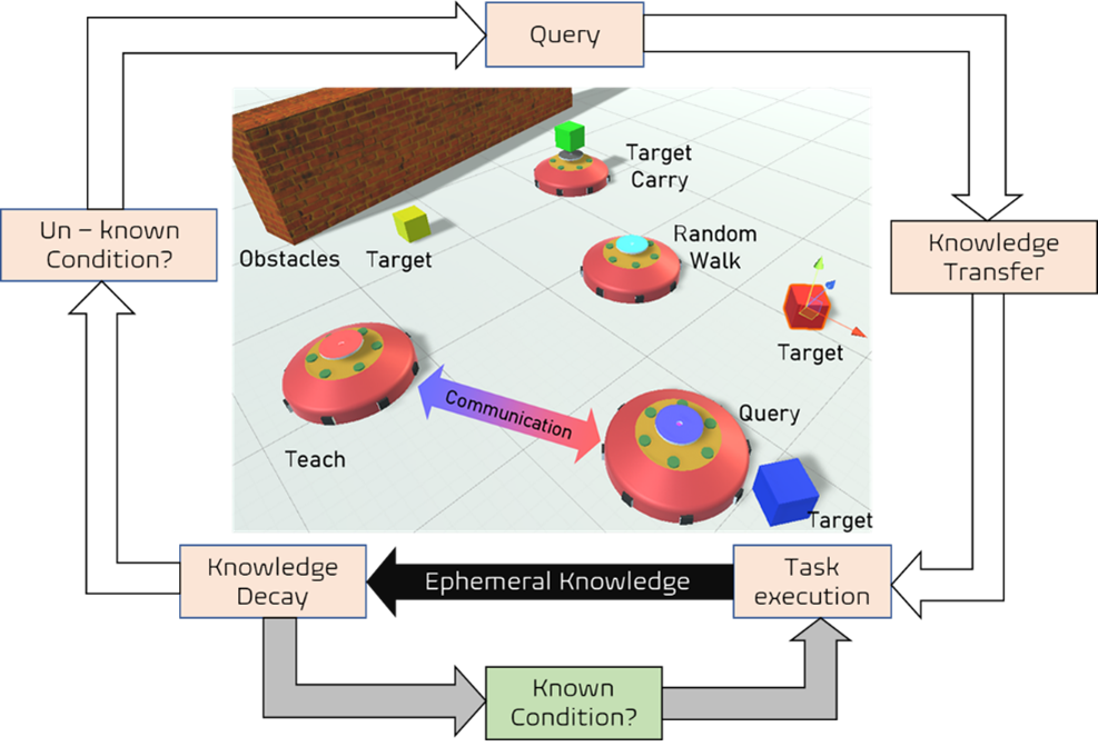 翻译:在人工群温系统中实现知识共享,可能导致自主多试剂和机器人系统研究和实现集体智能方面的自主多试剂和机器人系统研究的重大发展。然而,这很难实现,因为除了基于查询的响应方法之外,没有通用的框架来在代理人之间转让技能。此外,自然生活系统对于所学的一切都有“忘却”特性。分析人工系统中的这种短暂性质(新知识的时记性)在文献中从未研究过。我们提议了一个基于行为树的框架,以实现一个查询-回应机制,用于转让被编码为该部分知识在代理人之间进行条件-行动控制分流以弥补这一差距的技能。我们模拟了一个具有不同初始知识的多试剂小组,用于执行飞行任务。在进行基本操作时,每个机器人都要求其他机器人对未知的条件作出反应。对此作出回应的机器人分享,分享行为树中的一部分知识是用来解决问题的。我们研究了通过这样一个框架获得的新知识的短暂性质,在这个框架中,代理人获得的知识要么因记忆而受到限制,要么因时间而被遗忘。我们的调查显示一个具有最起码的知识周期,我们发现这些知识的积累到最起码的知识。