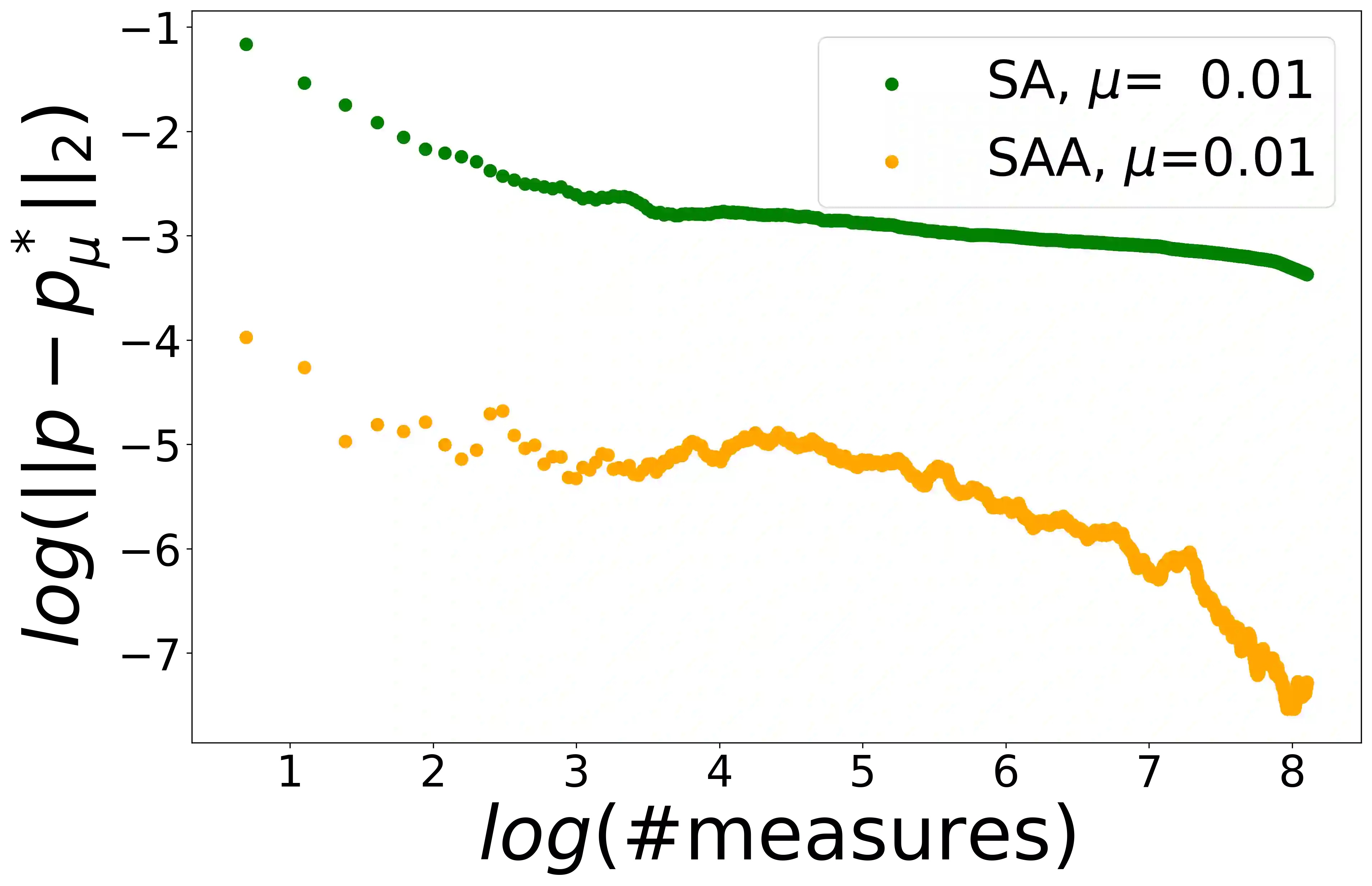 翻译:在机器学习和优化社区,尽量减少风险问题有两种主要方法,即斯托切吸附(SA)和样本平均吸附(SAA),在分解复杂程度(要求的随机梯度评价数量)方面,这两种方法都被视为平均相等(直至对数系数),但总复杂程度取决于具体问题,但一般都认为,从工作开始,SA比SA要好。然而,在大规模问题出现时,SA可能失去记忆,因为将所有数据储存在一台机器上并组织在线访问它,而没有与其他机器的通信是不可能的。SAA与SA不同时,可以进行平行/分布计算。在本文中,我们对SA和SA的比较,就计算离散措施的人口(正规化的)瓦森斯坦温温中心的特殊问题作了新的说明。这一结论甚至对非平行(非分散化的)设置也有效。