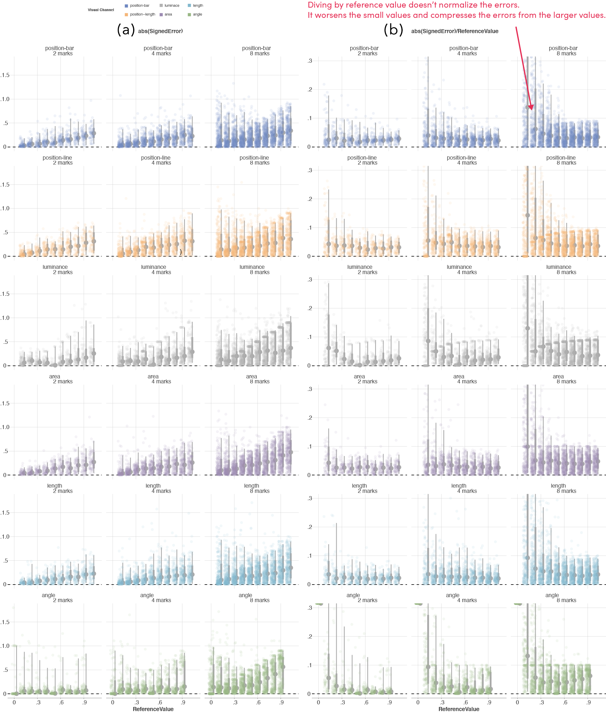 翻译:可以通过位置、 长度或亮度等视觉频道来显示数据。 这些视觉频道的现有排名基于参与者如何精确地报告两个描述的值之间的比例。 假设这种排名应该用于不同的任务和不同的标记数量。 但是, 现有的工作测试假设很少, 特别是考虑到在现实世界的视觉化中,视觉计算比率相对不重要, 与视觉、 记忆和比较不同, 显示的显示几乎普遍地描述两个以上的值。 我们要求参与者立即从记忆中复制一套数值。 通过一种巴伊西亚多级别模型方法, 我们观察视觉频道的相关级别位置如何在不同数量( 2、 4 或 8) 之间移动, 以及偏差、 偏差、 精确和误差衡量。 现有的工作测试假设, 即使在复制2 马克时, 新的排序也非常不一致。 其它因素除了频道选择对业绩的影响要大得多, 例如系列中的数值( 例如, 更多的标记导致更大的误差), 我们观察了不同的视觉频道的相关级别位置位置位置位置位置位置, 或者每个标记的数值值值值比 更差( ), 直观的排序, 直观的顺序的排序,, 直观的比 直观的比 直观的比 的 直观 直观 的 的 的 的 直观的 直观 的 的 的 的 直观的 直观的 直观的 直观 直观 的 的 的 的 的 的 的 的 直观 直观 的 的 的 的 的 的 直观 的 直观 的 的 直观 的 的 直观 直观 的 的 的 的 的 的 的 的 直观 的 的 的 的 的 的 的 的 的 的 的 的 的 的 的 的 的 的 的 的 直观 直观 直观 直观 的 直观 的 的 的 的 直 直 的 的 的 的 的 的 直 直 直 直 直 直 等 直 直 直 直 直 直 直 直