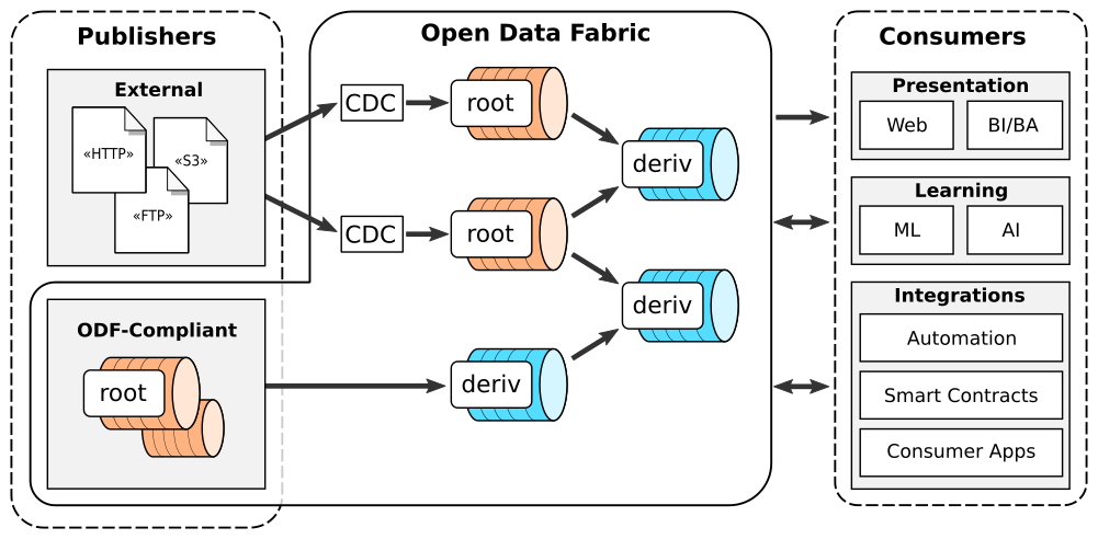 Data is the most powerful decision-making tool at our disposal. However, despite the exponentially growing volumes of data generated in the world, putting it to effective use still presents many challenges. Relevant data seems to be never there when it is needed - it remains siloed, hard to find, hard to access, outdated, and of bad quality. As a result, governments, institutions, and businesses remain largely impaired in their ability to make data-driven decisions. At the same time, data science is undergoing a reproducibility crisis. The results of the vast majority of studies cannot be replicated by other researchers, and provenance often cannot be established, even for data used in medical studies that affect lives of millions. We are losing our ability to collaborate at a time when significant improvements to data are badly needed. We believe that the fundamental reason lies in the modern data management processes being entirely at odds with the basic principles of collaboration and trust. Our field needs a fundamental shift of approach in how data is viewed, how it is shared and transformed. We must transition away from treating data as static, from exchanging it as anemic binary blobs, and instead focus on making multi-party data management more sustainable: such as reproducibility, verifiability, provenance, autonomy, and low latency. In this paper, we present the Open Data Fabric, a new decentralized data exchange and transformation protocol designed from the ground up to simplify data management and enable collaboration around data on a similar scale as currently seen in open-source software.