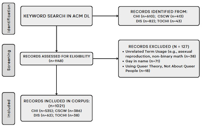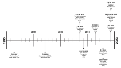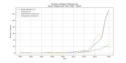LGBTQ+ people have received increased attention in HCI research, paralleling a greater emphasis on social justice in recent years. However, there has not been a systematic review of how LGBTQ+ people are researched or discussed in HCI. In this work, we review all research mentioning LGBTQ+ people across the HCI venues of CHI, CSCW, DIS, and TOCHI. Since 2014, we find a linear growth in the number of papers substantially about LGBTQ+ people and an exponential increase in the number of mentions. Research about LGBTQ+ people tends to center experiences of being politicized, outside the norm, stigmatized, or highly vulnerable. LGBTQ+ people are typically mentioned as a marginalized group or an area of future research. We identify gaps and opportunities for (1) research about and (2) the discussion of LGBTQ+ in HCI and provide a dataset to facilitate future Queer HCI research.
