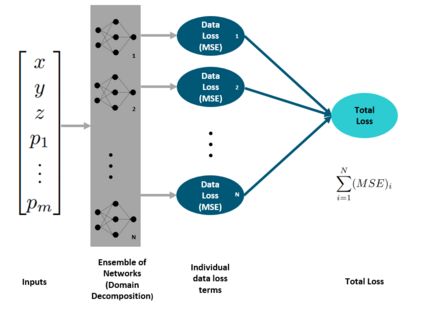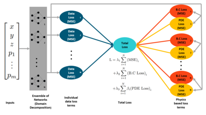 Successfully training Physics Informed Neural Networks (PINNs) for highly nonlinear PDEs on complex 3D domains remains a challenging task. In this paper, PINNs are employed to solve the 3D incompressible Navier-Stokes (NS) equations at moderate to high Reynolds numbers for complex geometries. The presented method utilizes very sparsely distributed solution data in the domain. A detailed investigation on the effect of the amount of supplied data and the PDE-based regularizers is presented. Additionally, a hybrid data-PINNs approach is used to generate a surrogate model of a realistic flow-thermal electronics design problem. This surrogate model provides near real-time sampling and was found to outperform standard data-driven neural networks when tested on unseen query points. The findings of the paper show how PINNs can be effective when used in conjunction with sparse data for solving 3D nonlinear PDEs or for surrogate modeling of design spaces governed by them.