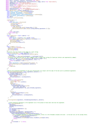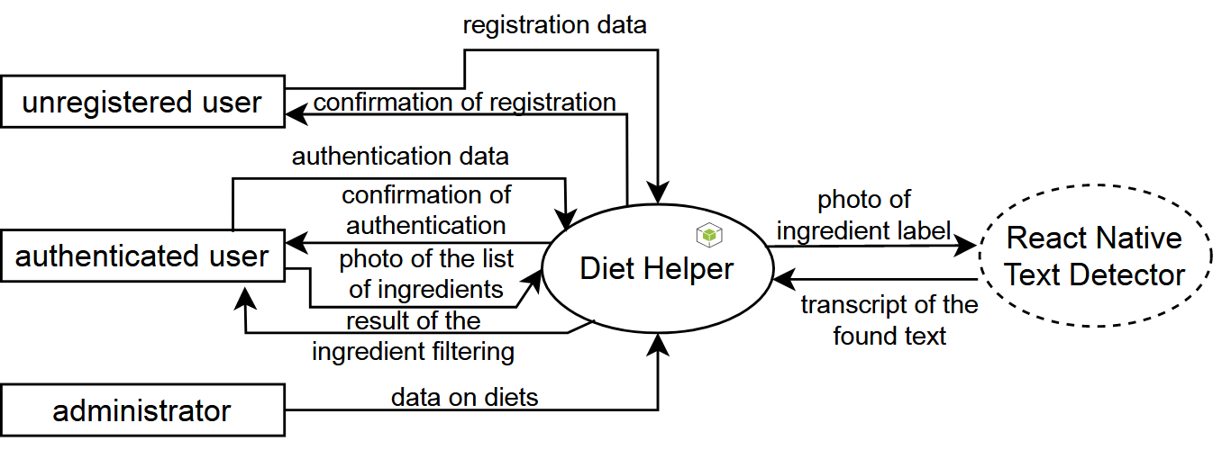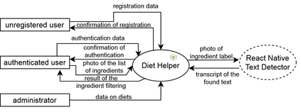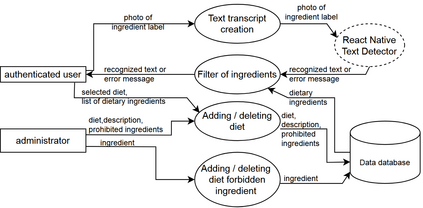 Today, more and more people are reporting allergies, which can range from simple reactions close to discomfort to anaphylactic shocks. Other people may not be allergic but avoid certain foods for personal reasons. Daily food shopping of these people is hampered by the fact that unwanted ingredients can be hidden in any food, and it is difficult to find them all. The paper presents a digital health shopping assistant called "Diet Helper", aimed to make life easier for such people by making it easy to determine whether a product is suitable for consumption, according to the specific dietary requirements of both types - existing diet and self-defined. This is achieved by capturing ingredient label, received by the app as an input, which the app analyses, converting the captured label to text, and filters out unwanted ingredients that according to the user should be avoided as either allergens or products to which the consumer is intolerant etc, helping the user decide if the product is suitable for consumption. This should make daily grocery shopping easier by providing the user with more accurate and simplified product selection in seconds, reducing the total time spent in the grocery stores, which is especially relevant in light of COVID-19, although it was and will remain out of it due to the busy schedules and active rhythm of life of modern society. The app is developed using the React Native framework and Google Firebase platform, which makes it easy to develop, use and extend such solutions thereby encouraging to start actively developing solutions that could improve wellbeing.