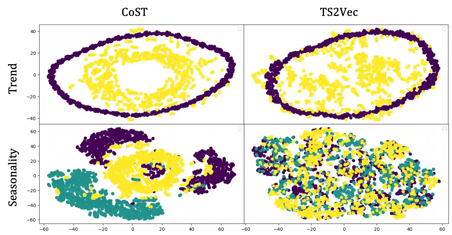翻译:为时间序列预测积极研究了深度学习,主流模式以神经网络结构的端到端培训为基础,从古典LSTM/RNNs到最近的TCNs和变异器不等。受最近在计算机视觉和自然语言处理方面的代表性学习的成功激励,我们认为,时间序列预测的一个更有希望的模式是首先学习分解的特征表现,然后是简单的回归微调步骤 -- -- 我们从因果关系的角度为这种模式辩护。遵循这一原则,我们提议一个新的时间序列代表学习框架,用于名为COST的时间序列预测,采用对比式学习方法学习分解的季节-趋势表现。COST包括时间域和频率域对比损失,以分别学习有区别的趋势和季节性表现。对真实世界数据集的广泛实验表明,CST始终以相当大的幅度超越了最新方法,在多变量基准上实现了MSE21.3 ⁇ 的改进。它对于骨架的选选用也很有力,也是下游的累列。