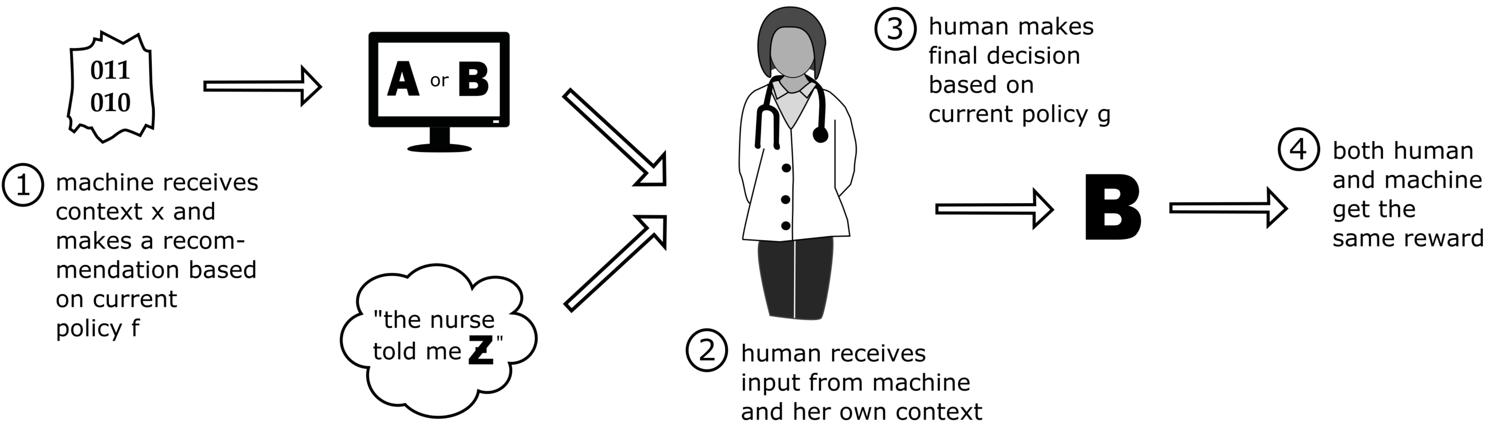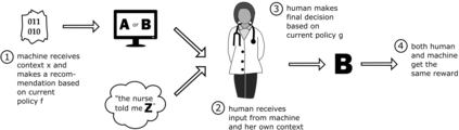 翻译:机器学习的应用在广泛的任务中为人类决策者提供信息。 由此产生的问题通常由一个决策者来提出。 我们争辩说,它应该被描述为一个玩家是机器,另一个是人的两个玩家学习的问题。 虽然两个玩家都试图优化最终决定,但设置的特点是:(1) 私人信息的存在和(2) 决策者之间不完全理解的不透明。 我们证明两种特性都可能使决策变得相当复杂。 限制较低是给一个不透明或能够获得私人信息的决策者提供最佳建议的最差情况硬性的一个量化。 上限显示简单的协调战略几乎是最小的。 在对问题的某些假设下,效率更高的学习是可能的,例如,两个玩家都学会独立采取行动。这种假设隐含在现有的文献中,例如在机器学习的医学应用中,但是在理论上没有被描述或证明合理。