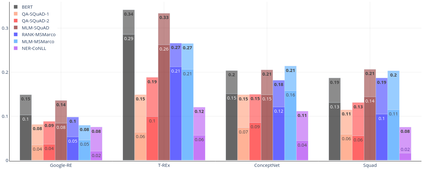 翻译:检验复杂的语言模型最近揭示了对在所学的表述中发现的语言和语义模式的一些洞察力。在本文中,我们专门调查生物伦理学和伦理学,以了解和衡量它所捕捉到的关系知识。我们利用知识基础的完成任务来探测经过预先训练的和经过精细调整的生物伦理学和伦理学(排名、问答、NER)的每一层。我们的研究结果表明,知识并不仅仅包含在生物伦理学和伦理学研究小组的最后一层中。中间层(17-60%)对所发现的知识总量的贡献很大。中间层也揭示了不同类型的知识如何以不同的速度出现。当生物伦理学和伦理学小组经过精细调整时,关系知识被遗忘了,但遗忘的程度却受到微调目标的影响,而不是数据集的大小。我们发现,排位模型忘记了最少的,在最后一层中保留了更多的知识。我们发布了关于插图的代码,以重复实验。