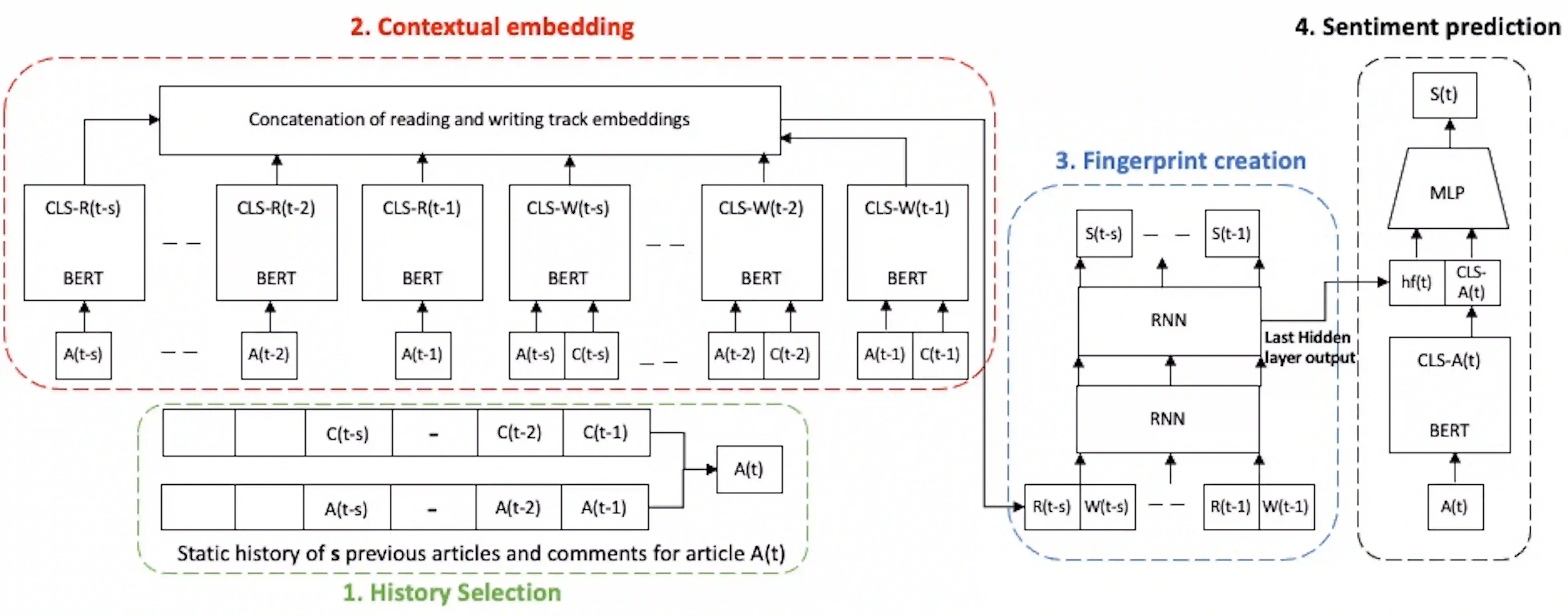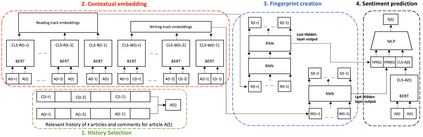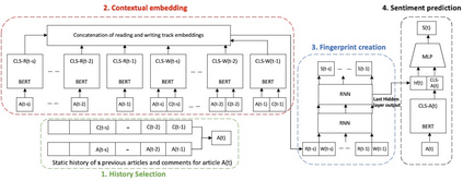 翻译:意见预测是一个新兴的研究领域,具有多种现实应用,例如市场研究和情景意识。我们确定了两种观点预测问题的方法。一种是使用时间序列模型进行基于主题的情绪分析,另一种是使用静态嵌入文本。后者通过生成用户指纹寻求针对用户的解决方案。这种方法有助于预测用户对无形内容的反应。在这项工作中,我们提出了一个新的动态指纹鉴别方法,利用以相关用户阅读历史为条件的用户评论背景嵌入。我们将BERT变量与经常性神经网络结合,以产生预测。结果显示,与以往方法相比,微F1核心的改进达到13 ⁇ 。实验结果显示,以前从未见过的新的洞见,例如,对动态历史长度增加的更好预测,文章的性质对业绩的影响,从而为进一步研究打下基础。