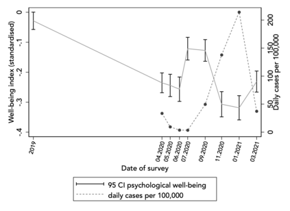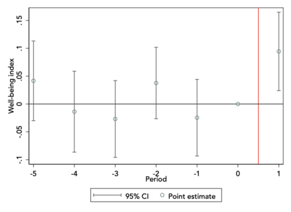 翻译:利用联合王国人口大规模小组调查代表提供的资料,我们量化了COVID-19疫苗对心理健康的影响。利用疫苗接种时间的外在差异,我们发现疫苗接种增加了心理健康(GHQ-12),标准偏差为0.12(GHQ-12),弥补了该流行病造成的总体减少的一半左右。这一影响至少持续了两个月,这与人们所察觉的签订COVID-19的可能性降低以及更多参与社会活动有关。对于精神受困者而言,改进幅度是1.5倍,支持在疫苗接种推广中优先考虑这一群体。