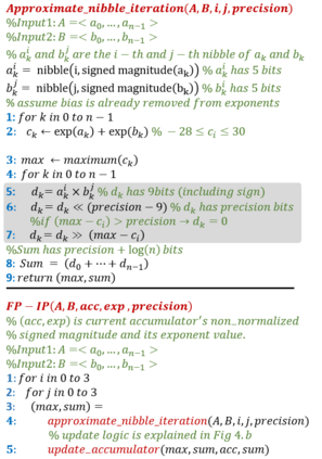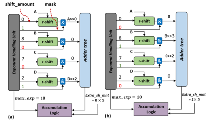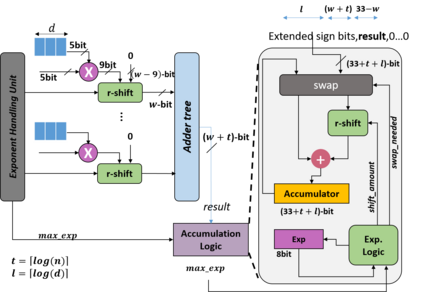 翻译:在本文中,我们提出一个混合精密卷动单元结构,支持不同的整数和浮动点(FP)精确度。拟议结构以低位内值产品单位为基础,根据时间分解实现更高的精确度。我们说明如何整合基于整数的建筑结构的FP计算,并评估FP计算支持产生的间接费用。我们争辩说,FP内产物的最大指数差异可能高达58位元,从而形成一个很大的校正逻辑。为了解决这一问题,我们从经验上说明,不需要超过26位比特产品位,在多数推断情况下,最多达8位比特。我们根据上述观察提出了新的优化,以减少FP计算硬件的硬件间接费用。我们根据模拟和硬件实施的经验结果显示,FP16的间接费用显著减少。在典型的混合精确实施中,拟议的结构在TFLLOPS/mm2和TOPS/mm2中实现了高达25%的改进,在TFLOPS/W和TPS/63W中提高了高达40%的功率,在TFLOPS/W中达到了46%。