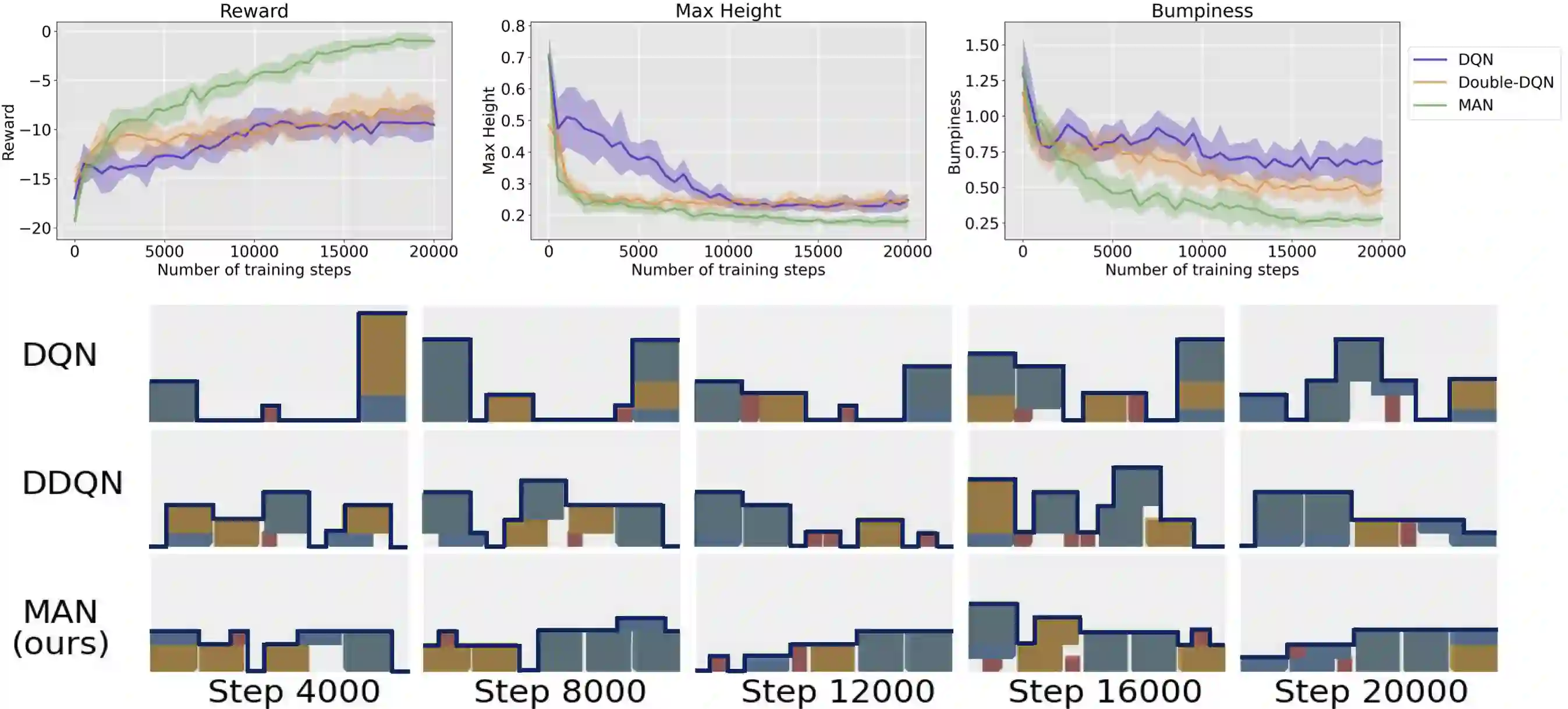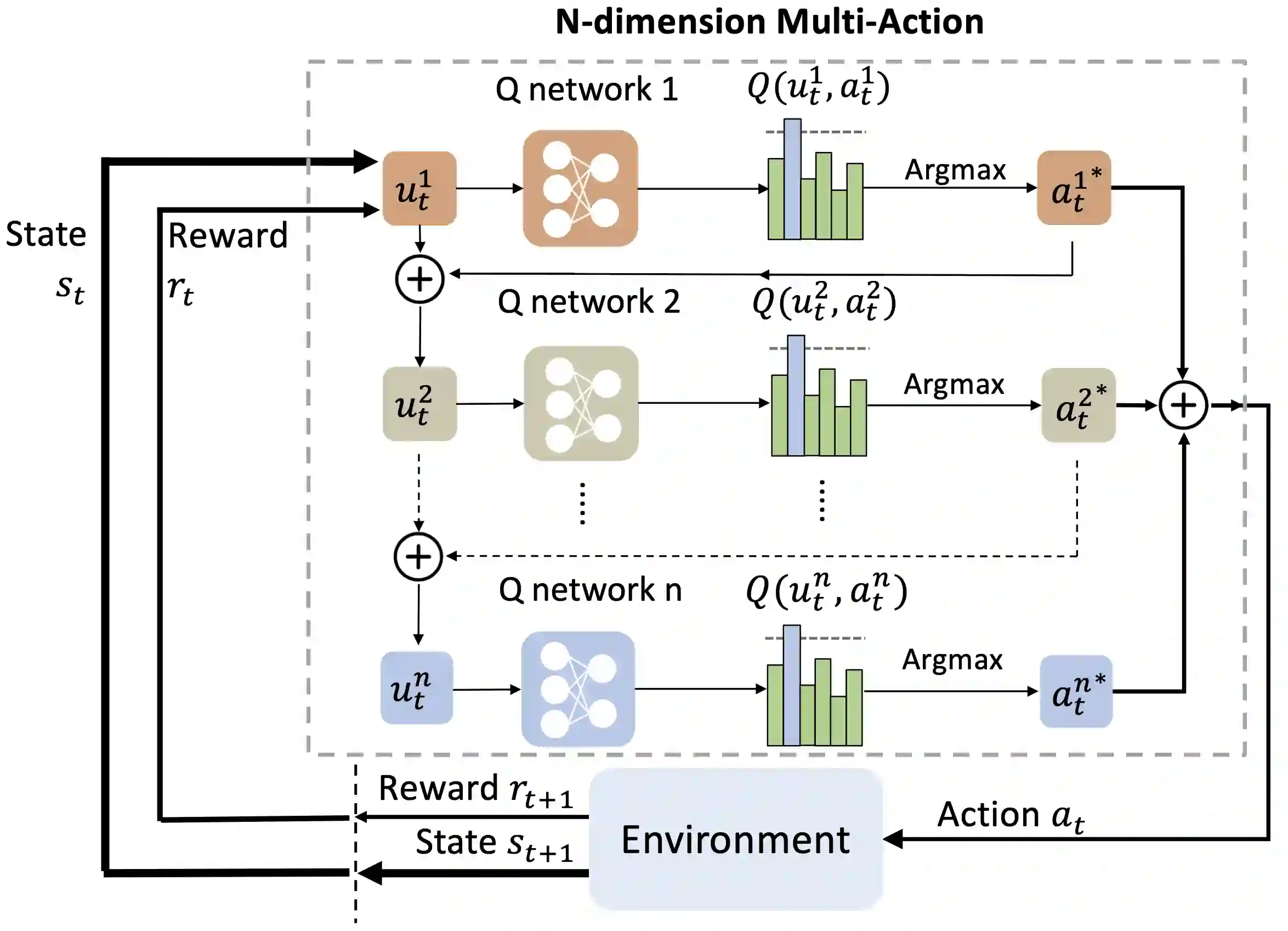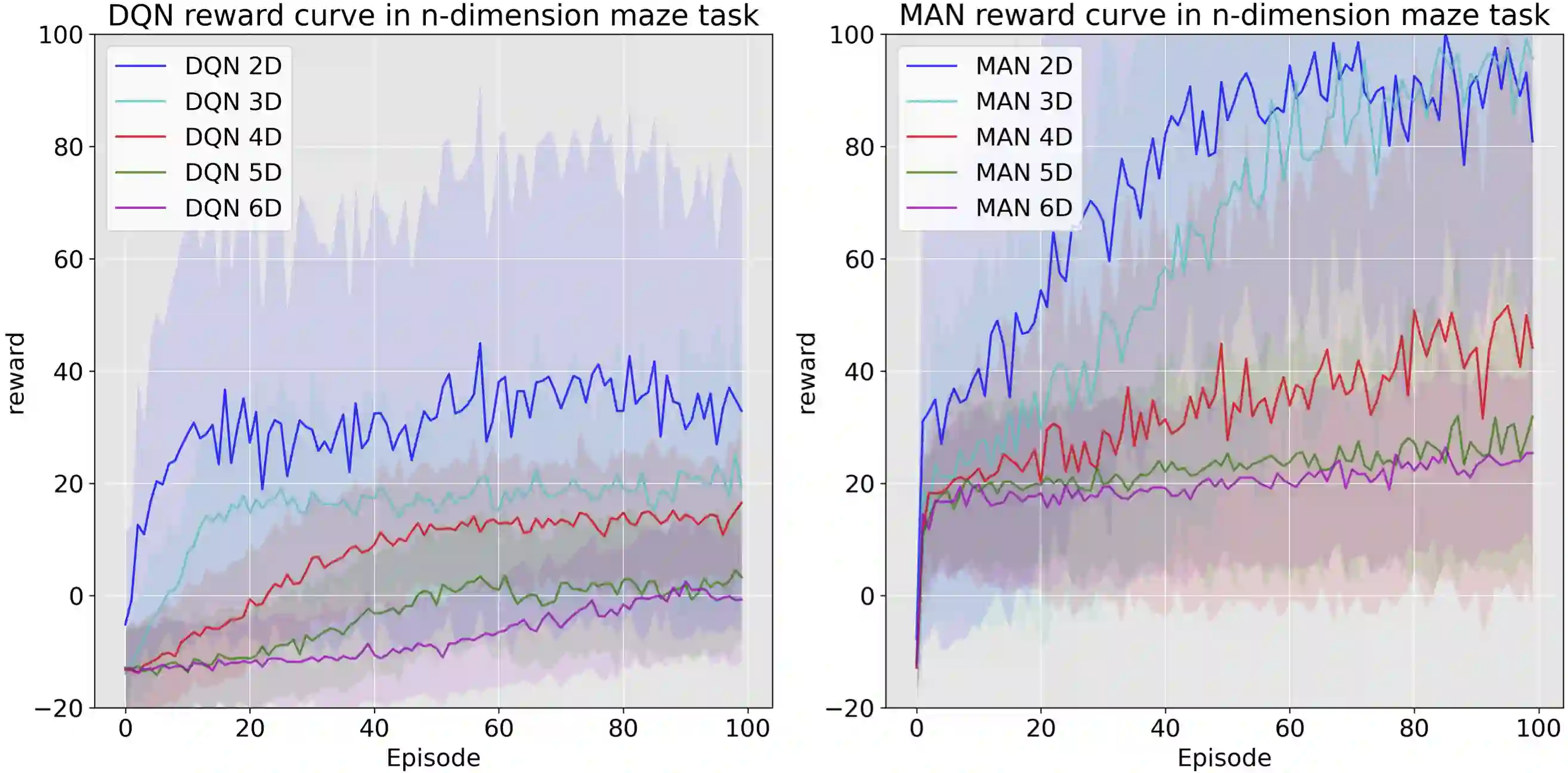 翻译:由于目前勘探效率低下,在强化学习领域,使用大型离散动作空间的学习控制政策是一个具有挑战性的难题。在高维行动空间中,每个单个层面都有大量潜在行动,可以学习政策。在这项工作中,我们引入了深强化学习(DRL)算法,称为多行动网络(MAN)学习,以应对高维大型离散动作空间的挑战。我们提议将Ndimenion动作空间纳入称为子动作的N1维部分,为每个子动作创建一个价值神经网络。然后,MAN利用时间差异学习同步地培训网络,这比直接培训一个具有大动作输出的单一网络简单得多。为了评估拟议的方法,我们测试MAN三种情景:N-dimenion Maze任务,一个块堆叠任务,然后将MAN扩大到18个动作空间的Atari Arcade学习环境的12场游戏。我们的结果显示,MAN学到的时间比深Qear和双深深基学习都要快,这意味着我们的方法比当前可以使用的时空空间更好地进行同步动作。</s>