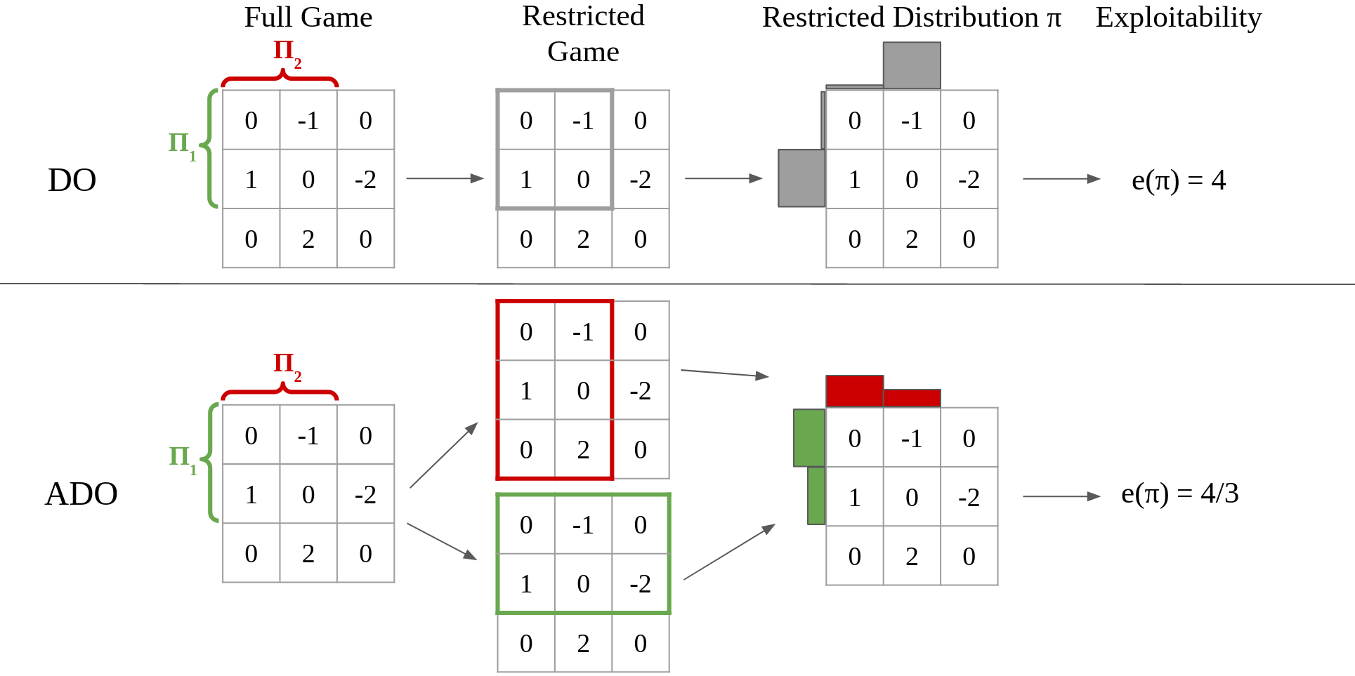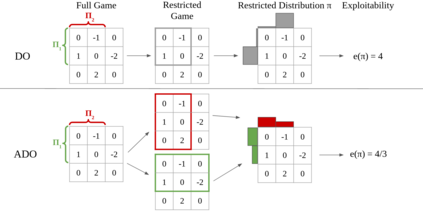翻译:政策空间反应或触角(PSRO)是一种多试剂强化学习算法,在非常大型的双玩者零和游戏中实现了最先进的性能。 PSRO是基于表单双甲骨(DO)方法的,该算法保证与纳什均衡趋同,但可能会增加从一个迭代到另一个迭代的利用能力。我们提议一个表单双甲骨(ADO)法,用于两玩者零和游戏的双甲骨(ADO),该算法保证与纳什平衡趋近,同时降低从一个迭代到下一个迭代的利用能力。与DO不同,在DO中,限制的分布是基于每个玩家战略组形成的有限游戏,ADO发现每个玩家的有限分配方式,这种分配方式在完全、无限制的游戏中最大限度地减少其利用性能,但在任何政策下,我们还提出一种方法,即通过一个不重复的算法,根据最佳反应,称为RM-BRDRDO(APRO) 。最后,我们提议一个ADRO(APSRRO),这个版本,通过强化学习来计算最佳反应最佳的反应,通过最佳反应,通过最优的学习来计算出最佳的反应。在更低的利用能力和低的游戏中,我们展示。我们在的游戏中,我们展示和任意的利用能力,我们展示的利用性,我们展示的游戏中,我们显示比普通的利用能力。