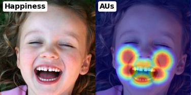 Although state-of-the-art classifiers for facial expression recognition (FER) can achieve a high level of accuracy, they lack interpretability, an important feature for end-users. Experts typically associate spatial action units (\aus) from a codebook to facial regions for the visual interpretation of expressions. In this paper, the same expert steps are followed. A new learning strategy is proposed to explicitly incorporate \au cues into classifier training, allowing to train deep interpretable models. During training, this \au codebook is used, along with the input image expression label, and facial landmarks, to construct a \au heatmap that indicates the most discriminative image regions of interest w.r.t the facial expression. This valuable spatial cue is leveraged to train a deep interpretable classifier for FER. This is achieved by constraining the spatial layer features of a classifier to be correlated with \au heatmaps. Using a composite loss, the classifier is trained to correctly classify an image while yielding interpretable visual layer-wise attention correlated with \au maps, simulating the expert decision process. Our strategy only relies on image class expression for supervision, without additional manual annotations. Our new strategy is generic, and can be applied to any deep CNN- or transformer-based classifier without requiring any architectural change or significant additional training time. Our extensive evaluation on two public benchmarks \rafdb, and \affectnet datasets shows that our proposed strategy can improve layer-wise interpretability without degrading classification performance. In addition, we explore a common type of interpretable classifiers that rely on class activation mapping (CAM) methods, and show that our approach can also improve CAM interpretability.