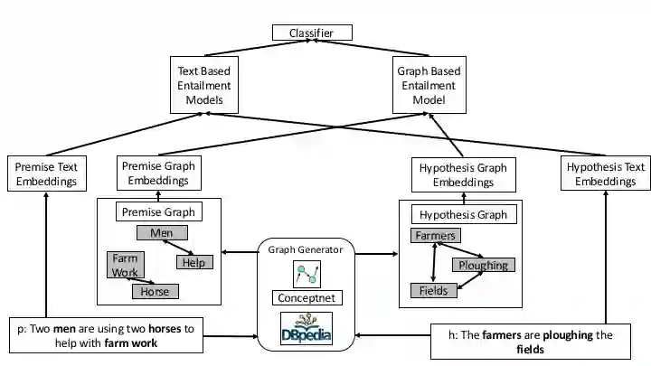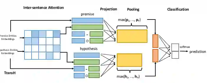 翻译:自然语言推断(NLI)是许多自然语言处理应用的基础,包括语义搜索和回答问题。由于大规模、具有挑战性的数据集的发布,NLI问题已引起极大关注。目前解决问题的方法主要侧重于学习方法,这些方法仅使用文本信息,以便分类某一前提是否涉及、矛盾或与某一假设无关。令人惊讶的是,基于结构化知识的方法的使用 -- -- 人工智能中的一个核心议题 -- -- 相对于NLI问题没有受到多少关注。虽然有许多开放的知识基础包含各种推理信息,但没有很好地探讨这些基础用于NLI。为了解决这一问题,我们介绍了利用知识图的组合技术,用以改进NLI科学领域问题方面的绩效。我们介绍了在文本、图表和文本到文字模型上应用我们的技术的结果,并讨论了使用外部知识解决NLI问题的影响。我们的模型在SciTail问题上实现了NLI问题的新状态。