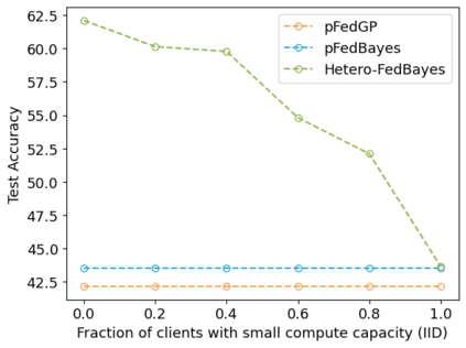 In several practical applications of federated learning (FL), the clients are highly heterogeneous in terms of both their data and compute resources, and therefore enforcing the same model architecture for each client is very limiting. Moreover, the need for uncertainty quantification and data privacy constraints are often particularly amplified for clients that have limited local data. This paper presents a unified FL framework to simultaneously address all these constraints and concerns, based on training customized local Bayesian models that learn well even in the absence of large local datasets. A Bayesian framework provides a natural way of incorporating supervision in the form of prior distributions. We use priors in the functional (output) space of the networks to facilitate collaboration across heterogeneous clients. Moreover, formal differential privacy guarantees are provided for this framework. Experiments on standard FL datasets demonstrate that our approach outperforms strong baselines in both homogeneous and heterogeneous settings and under strict privacy constraints, while also providing characterizations of model uncertainties.