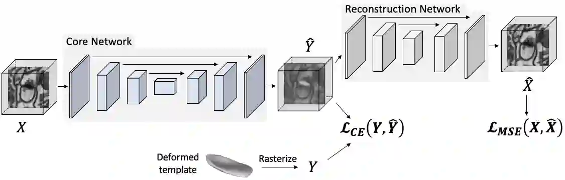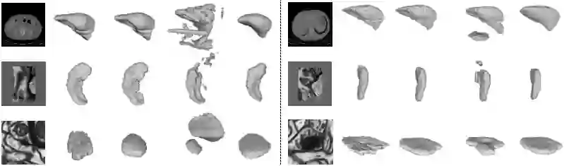 翻译:对 2D 图像部分的网络进行监管薄弱的培训有许多方法。 相反, 分解体积图像的现有方法依赖于3D 音量的2D 片段的全视。 我们建议对体积分解采取一种真正受监管薄弱的方法, 也就是说我们只需在目标对象表面提供一套稀疏的3D 点, 而不是详细的 2D 面罩。 我们用 3D 点来变形一个 3D 模板, 以便大致匹配目标对象的轮廓, 我们引入一个架构, 利用它所提供的监督来训练一个网络以找到准确的边界 。 我们评估了我们关于 Computut Tomgraphy (CT)、 Maget Resonance 图像(MRI) 和 电磁显微镜(EM) 图像数据集的方法, 并显示它大大降低了所需的工作量 。