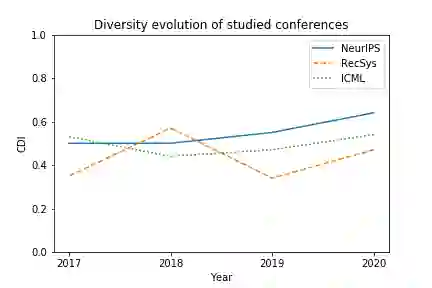 翻译:目前人们关注的是,人工智能(AI)领域缺乏多样性,一些倡议,例如筹资计划和指导方案,已经设计来克服这一问题,然而,没有说明这些倡议如何在短期和长期内实际影响AI多样性。这项工作研究在这一特定背景下的多样性概念,并提出了AI科学活动的一小部分多样性指标(即指数)。这些指标旨在量化AI领域的多样性,并监测其演变情况。我们从性别、地理位置和商业方面考虑多样性(被理解为学术界与工业界的存在)。我们为会议的不同社区,即作者、主旨发言人和组织委员会计算了这些指标。我们从这些组成部分中计算了每次AI活动的概括多样性指标。我们评估了一套最近大赦国际大型会议的拟议指数,并讨论了这些会议的价值和局限性。