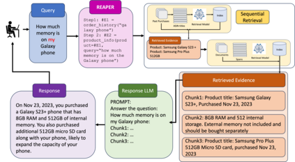 Complex dialog systems often use retrieved evidence to facilitate factual responses. Such RAG (Retrieval Augmented Generation) systems retrieve from massive heterogeneous data stores that are usually architected as multiple indexes or APIs instead of a single monolithic source. For a given query, relevant evidence needs to be retrieved from one or a small subset of possible retrieval sources. Complex queries can even require multi-step retrieval. For example, a conversational agent on a retail site answering customer questions about past orders will need to retrieve the appropriate customer order first and then the evidence relevant to the customer's question in the context of the ordered product. Most RAG Agents handle such Chain-of-Thought (CoT) tasks by interleaving reasoning and retrieval steps. However, each reasoning step directly adds to the latency of the system. For large models this latency cost is significant -- in the order of multiple seconds. Multi-agent systems may classify the query to a single Agent associated with a retrieval source, though this means that a (small) classification model dictates the performance of a large language model. In this work we present REAPER (REAsoning-based PlannER) - an LLM based planner to generate retrieval plans in conversational systems. We show significant gains in latency over Agent-based systems and are able to scale easily to new and unseen use cases as compared to classification-based planning. Though our method can be applied to any RAG system, we show our results in the context of a conversational shopping assistant.