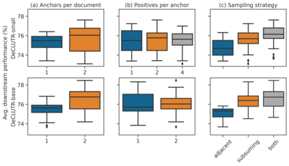 翻译:句子嵌入是许多自然语言处理( NLP) 系统的重要组成部分。 和字嵌入一样, 句嵌入通常是在大型文本组合中学习, 然后被转移到各种下游任务, 如组合和检索。 与字嵌入不同, 学习句嵌入的最有效解决方案需要贴标签数据, 将其效用限制在标签数据丰富的语言和领域。 本文介绍了 DCLUTR: 用于不受监管的文本表达的深度差异学习 。 在深层次指标学习( DML) 的最新进展的启发下, 我们仔细设计了一个学习通用句嵌入的自监督目标, 不需要贴标签的培训数据。 当用于扩展基于变压器语言模型的预培训时, 我们的方法缩小了未监督和监管的通用句子编码师前培训之间的性差。 重要的是, 我们的实验表明, 学习的嵌入规模的质量与可训练参数的数量和未贴标签培训数据的数量一样。 我们的代码和预设的模型可以公开使用, 可以很容易地适应新的域, 或用于嵌入秘密文本 。