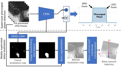 翻译:视频含氟吞咽研究(VFSS)是一种用于评估吞咽量的黄金标准成像技术,但VFSS记录的分析与评级耗费时间,需要专门培训和专门知识。研究人员最近表明,可以通过计算机视觉自动检测吞咽的石英阶段,将VFSS记录中的肉体本地化,促进开发VFSS自动分析的新颖技术。然而,为完成这些任务而培训算法需要大量附加说明的数据,而这种数据很少可用。我们表明,可以使用单一的方法,共同解决对VHIGES记录进行更高级检测和肉毒剂本地化的挑战。我们建议了一个深层次的学习框架,共同解决吞咽的石英阶段检测和肉质本地化,只需要开发蒸汽阶段的初始和最终框架,作为培训的地面图解支持。我们的方法源自观测到,在Pharynx的血液中存在肉毒的肉质,这是最突出的视觉特征,可以用来判断VFS-CNS图架是否属于59级的神经级的血液图象处理过程。我们在12级的轨道上,我们用一个直径级的直径直径分析,我们用直径直径的直径分析将一个直径直径直径。