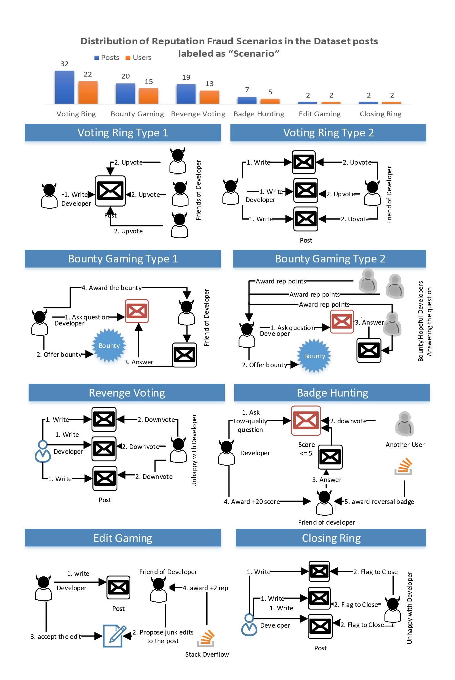 Stack Overflow incentive system awards users with reputation scores to ensure quality. The decentralized nature of the forum may make the incentive system prone to manipulation. This paper offers, for the first time, a comprehensive study of the reported types of reputation manipulation scenarios that might be exercised in Stack Overflow and the prevalence of such reputation gamers by a qualitative study of 1,697 posts from meta Stack Exchange sites. We found four different types of reputation fraud scenarios, such as voting rings where communities form to upvote each other repeatedly on similar posts. We developed algorithms that enable platform managers to automatically identify these suspicious reputation gaming scenarios for review. The first algorithm identifies isolated/semi-isolated communities where probable reputation frauds may occur mostly by collaborating with each other. The second algorithm looks for sudden unusual big jumps in the reputation scores of users. We evaluated the performance of our algorithms by examining the reputation history dashboard of Stack Overflow users from the Stack Overflow website. We observed that around 60-80% of users flagged as suspicious by our algorithms experienced reductions in their reputation scores by Stack Overflow.