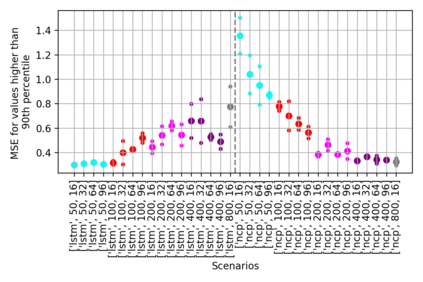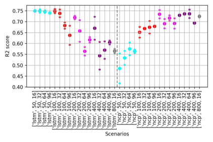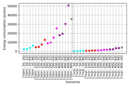 Optimization of radio hardware and AI-based network management software yield significant energy savings in radio access networks. The execution of underlying Machine Learning (ML) models, which enable energy savings through recommended actions, may require additional compute and energy, highlighting the opportunity to explore and adopt accurate and energy-efficient ML technologies. This work evaluates the novel use of sparsely structured Neural Circuit Policies (NCPs) in a use case to estimate the energy consumption of base stations. Sparsity in ML models yields reduced memory, computation and energy demand, hence facilitating a low-cost and scalable solution. We also evaluate the generalization capability of NCPs in comparison to traditional and widely used ML models such as Long Short Term Memory (LSTM), via quantifying their sensitivity to varying model hyper-parameters (HPs). NCPs demonstrated a clear reduction in computational overhead and energy consumption. Moreover, results indicated that the NCPs are robust to varying HPs such as number of epochs and neurons in each layer, making them a suitable option to ease model management and to reduce energy consumption in Machine Learning Operations (MLOps) in telecommunications.