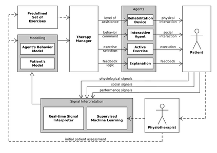 翻译:在当今世界,许多认知障碍和运动机能障碍的患者寻求专家的关注,以实施具体的常规疗法来改善他们的状况,然而,由于缺乏神经康复专业人员,患者遭受了恶化其状况的严重影响。在本文件中,我们为新颖的机器人神经康复培训系统提出了一个技术方法,它依赖于康复装置、信号分类方法、培训适应的受监督机器学习模式、培训练习以及作为用户界面的社会互动代理等组合。与专业人士一起,该系统可以针对患者的具体需求进行培训。此外,在培训阶段之后,病人可以在家中独立接受培训,而无需由具有社会互动代理的物理治疗师和辅导助理协助。