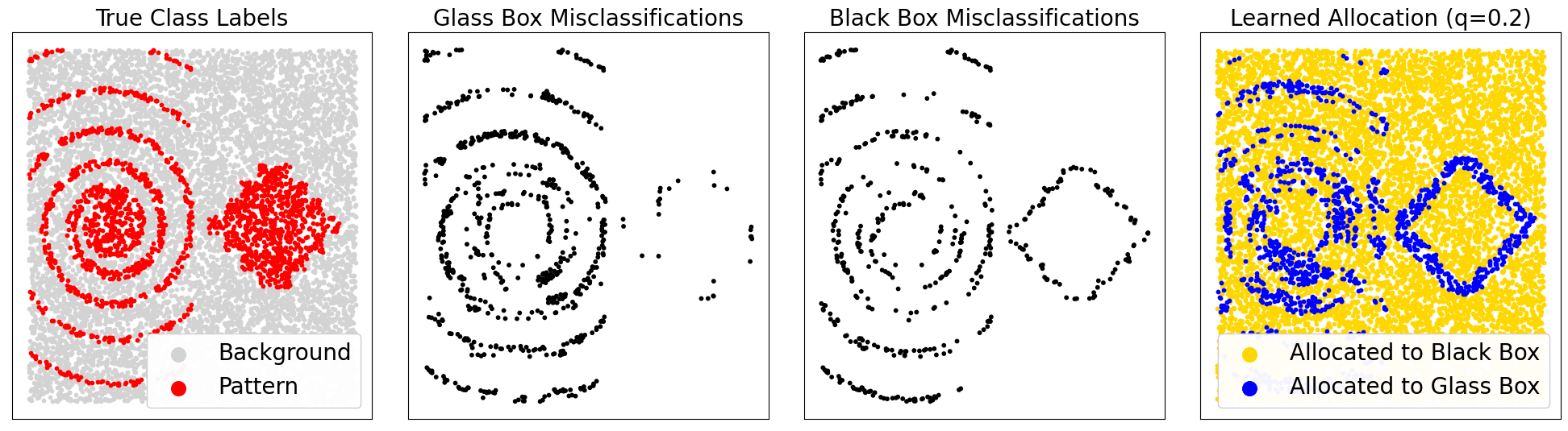 In this paper we propose a method for the optimal allocation of observations between an intrinsically explainable glass box model and a black box model. An optimal allocation being defined as one which, for any given explainability level (i.e. the proportion of observations for which the explainable model is the prediction function), maximizes the performance of the ensemble on the underlying task, and maximizes performance of the explainable model on the observations allocated to it, subject to the maximal ensemble performance condition. The proposed method is shown to produce such explainability optimal allocations on a benchmark suite of tabular datasets across a variety of explainable and black box model types. These learned allocations are found to consistently maintain ensemble performance at very high explainability levels (explaining $74\%$ of observations on average), and in some cases even outperforming both the component explainable and black box models while improving explainability.