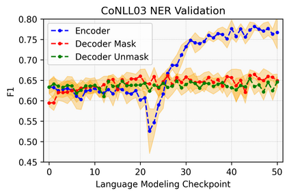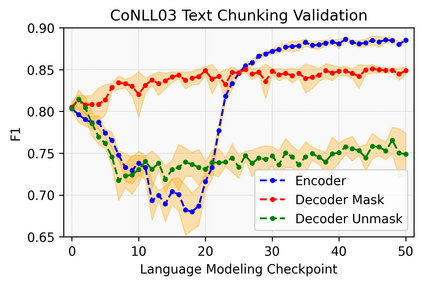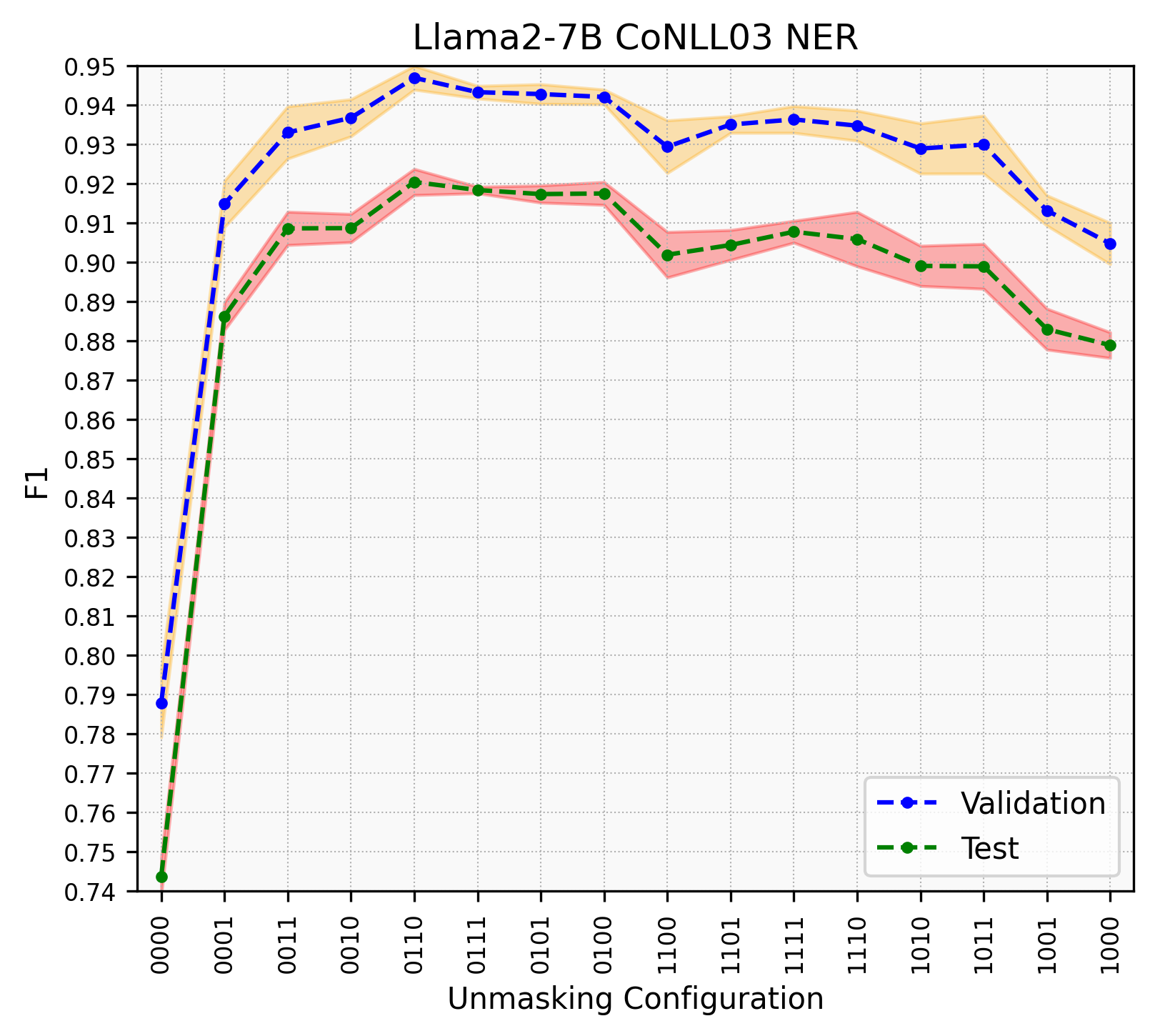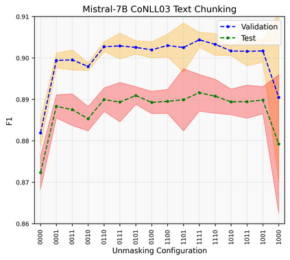 Pre-trained language models based on masked language modeling (MLM) excel in natural language understanding (NLU) tasks. While fine-tuned MLM-based encoders consistently outperform causal language modeling decoders of comparable size, recent decoder-only large language models (LLMs) perform on par with smaller MLM-based encoders. Although their performance improves with scale, LLMs fall short of achieving state-of-the-art results in information extraction (IE) tasks, many of which are formulated as sequence labeling (SL). We hypothesize that LLMs' poor SL performance stems from causal masking, which prevents the model from attending to tokens on the right of the current token. Yet, how exactly and to what extent LLMs' performance on SL can be improved remains unclear. We explore techniques for improving the SL performance of open LLMs on IE tasks by applying layer-wise removal of the causal mask (CM) during LLM fine-tuning. This approach yields performance gains competitive with state-of-the-art SL models, matching or outperforming the results of CM removal from all blocks. Our findings hold for diverse SL tasks, demonstrating that open LLMs with layer-dependent CM removal outperform strong MLM-based encoders and even instruction-tuned LLMs.