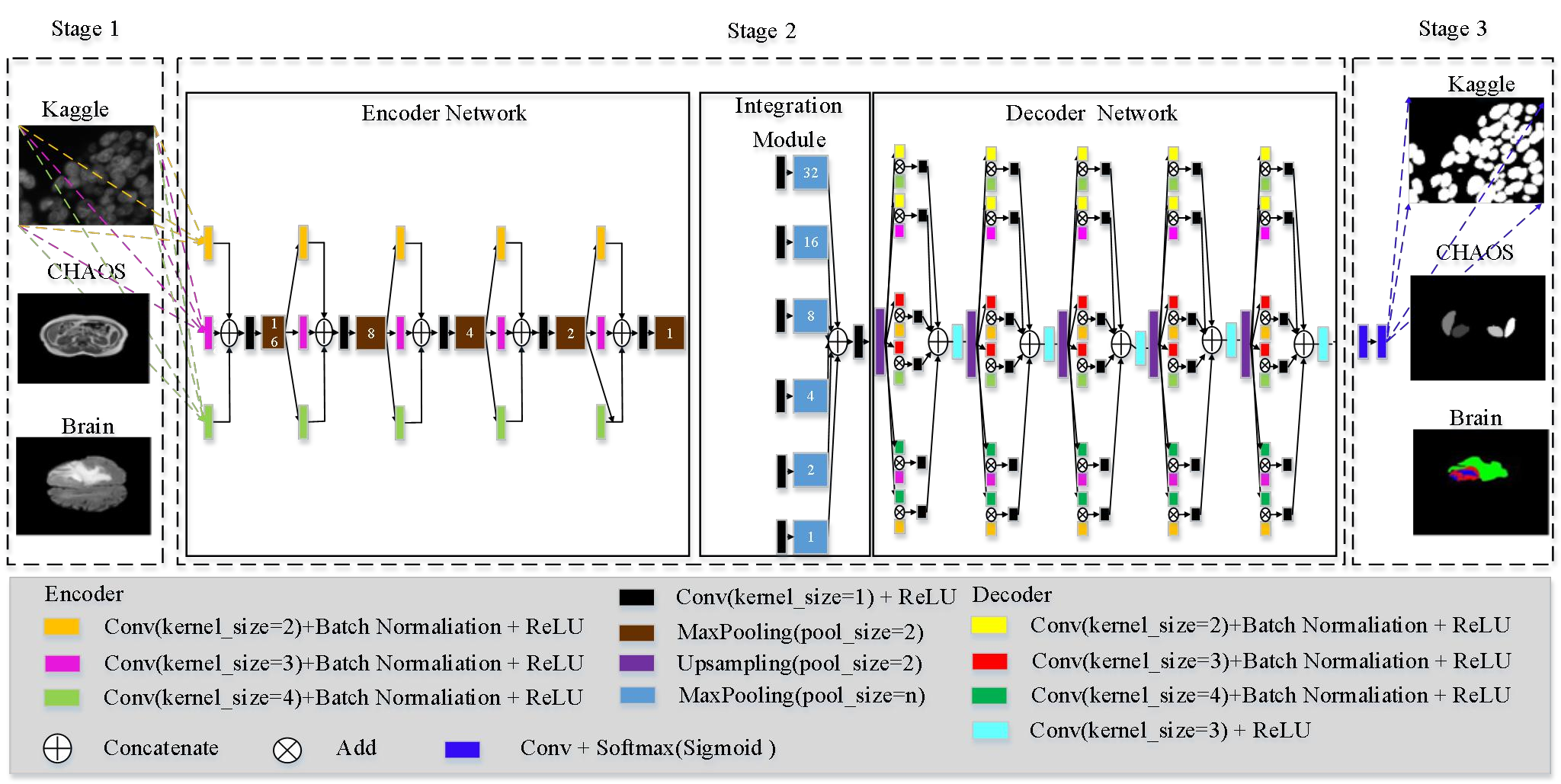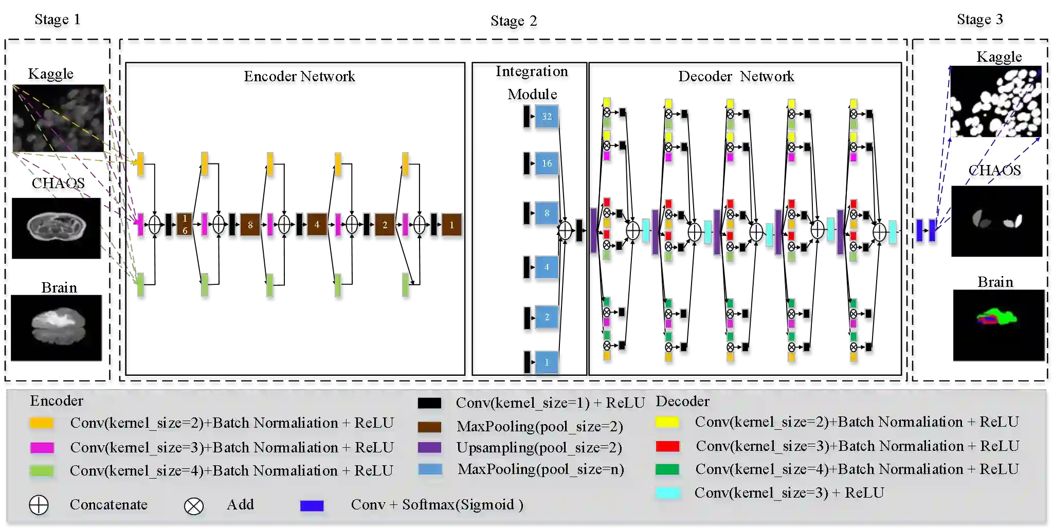 翻译:为了更好地保留图像的深度特性并解决端到端分割模型的广度问题,我们建议为医学图像像素分割模式(称为 MC-Net ) 建立一个新的深相变异网络模型模式。 网络模型的核心由四个部分组成, 即: 编码器网络、 多个最大集合集成模块、 跨多级分解解解解调网络 和像素级分类层 。 在编码器的网络结构中, 我们使用多级网络变换, 而不是传统的单级循环。 多级最大数据融合模块首先整合了编码网络每个子模块的输出功能, 并使用1 个内层大小的内脏变换码网络, 同时, 每个最大集合层( 每个层的集合体积大小不同) 在每次变相后, 我们使用多级混合集成集成模块的输出特征图, 以作为电解解解码网络的每个子流流流流流化网络的输出功能, 并且使用多级的内层变变的内存数据 。