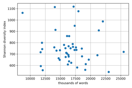 翻译:多样性指数历来用来通过测量物种或物种群的有效数量来捕捉生态系统的生物多样性,而丰富程度与现有数据数量相关,多样性指数则提供了个人可变性的更强有力的指标,这些类型的指数可以在数字图书馆中用于确定专题分布趋势、比较不同作者使用的词汇或分析语义元数据的覆盖范围。