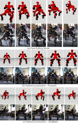 翻译:新机器人设计最近才开启了一种导航模式,例如半人马型人型CENTARO[1]或四倍Anymal[2],其配置以不可移动的轮子为主。混合轮子移动一词以后用来表示一种特定类型的移动,通过同时和协调地使用腿和轮子而实现,见Fig。1. 这种选择源自于腿脚移动和更简单的轮子导航之间的交叉点,以便从两种技术中获得最佳效果:从第一种技术、速度和稳定性中绕过不均的地形的易动性和能力。结果,混合机器人的可行轨迹规划问题与腿移动问题有许多相似之处:在混合情况下,基地运动是通过脚与环境的接触实现的,同时考虑到轮子脚可以推倒地面而不是拉动它。必须与摩擦锥相兼容的力量必须加以考虑,同时接触可以沿着轮子方向的方向滑动。
