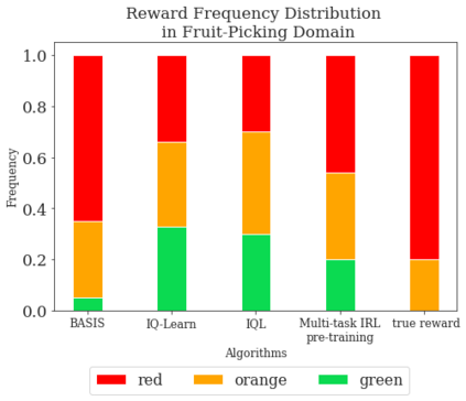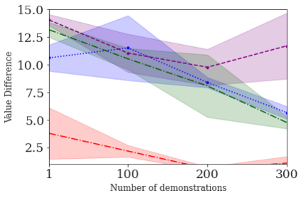 翻译:本文讨论了反强化学习(IRL)问题 -- -- 推断代理人的奖赏功能是观察其行为。IRL可以为学徒学习提供一个普遍和紧凑的代表性,并能够准确地推断人类的偏好,以协助他们。% 并提供更准确的预测。然而,有效的IRL具有挑战性,因为许多奖励功能可以与观察到的行为相容。我们侧重于如何利用先前的强化学习(RL)经验,使这些偏好更快和更有效地学习。我们建议IRL的算法BASIS(通过从抽样中测算继承和性能能力获得BAISIS),利用多重任务RL的预培训和后续特征,使代理人能够建立强有力的基础,使意图跨越某一领域可能达到的目标空间。当仅仅受到少数专家演示的优化新目标时,代理人利用它的基础快速和有效地推算奖励功能。我们的实验表明,我们的方法在推断和优化已显示的奖赏功能方面非常有效,准确推导出不到100个目标的奖励功能。
