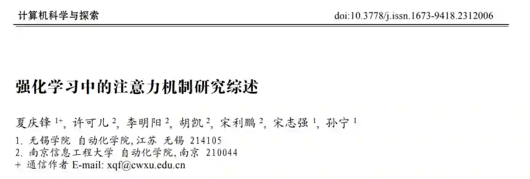 摘要: 近年来,强化学习与注意力机制的结合在算法研究领域备受瞩目。在强化学习算法中,注意力机制的应用在提高算法性能方面发挥了重要作用。本文重点聚焦于注意力机制在深度强化学习中的发展,审视了其在多智能体强化学习领域的应用,并对相关研究成果进行调研。首先介绍了注意力机制和强化学习的研究背景与发展历程,并调研了该领域中的相关实验平台;然后,回顾了强化学习与注意力机制的经典算法,并从不同角度对注意力机制进行分类;接着,对注意力机制在强化学习领域的应用进行了梳理,根据三种任务类型(完全合作型、完全竞争型和混合合作竞争型)进行分类分析,重点关注了多智能体领域的应用情况;最后总结了注意力机制对强化学习算法的改进作用,并展望了该领域所面临的挑战和未来的研究前景。本文的工作有助于研究人员更深入地探索该领域,有助于进一步推动强化学习与注意力机制在实际项目中取得更加广泛和深远的应用,为未来的研究提供了一定的指导作用。 随着人工智能技术的不断发展,强化学习 (Reinforcement Learning, RL)和注意力机制的结 合在多机器人控制领域受到了越来越多的关注。RL 是机器学习的一个分支,专注于处理序列决策问题, 具有良好的鲁棒性能和能够更好地适应环境的优 点[1]。在实际 RL 应用中,智能体接收到的信息复 杂且繁多,并且 RL 算法的可解释性较低。为了解 决这些难题,研究人员在 RL 中引入了注意力机制。 随着机器学习的发展和计算机算力的提升, RL 领域、注意力机制领域以及二者相结合的应用 正受到越来越多的关注。在过去几十年中,研究人 员们提出了多种与其相关的算法,充分发挥了 RL 的决策能力和注意力机制的信息处理能力,以实现 多个智能体之间的最优决策。1989 年,Watkins 和 Dayan 将 Bellman 方程、Markov 决策过程等最优控 制理论与时间差学习相结合,创造了 Q-learning 算 法。随后,Q-learning 被广泛应用于解决各种实际 问题。注意力机制最早于 2014 年被提出,由 Google Mind 团队的研究人员[2]引入了一种基于 RNN 的注 意力模型,名为视觉注意的循环模型,旨在解决视 觉任务中的对象识别和图像分类等问题。随着智能 体数量的增加,各个智能体之间需要处理和沟通以 做出决策的信息也在显著增加,这会导致有用信号 淹没在背景噪声中。为了应对这一问题,研究人员 [3]提出了一种基于注意力机制的多智能体强化学 习(Multi-Agent Reinforcement Learning, MARL)算 法——多重注意力演员-评论家算法(Multiple Attention Actor-Critic with Attention, MAAC-A )。 MAAC-A 通过一个集中的评论家和多个分散的演 员来学习多智能体系统(Multi-Agent System, MAS)。 为了克服传统价值函数方法和 PG 方法在多智能体 问题上的限制,MAAC-A 借鉴了多智能体深度确定 性策略梯度方法(Multi-Agent Deep Deterministic Policy Gradient, MADDPG),该方法运用注意力机 制关注不同智能体之间的交互,从而提高学习效率 和性能。随后,2021 年,研究者[4]提出了一种基于 自关注机制的深度循环 Q 学双引擎谣言检测模型, 结合自注意力机制和 RL,可以更早地排除不必要 的信息,进而提高准确率。由于其处理大量信息的能力,注意力机制在RL 领域引起了广泛关注。OpenAI、DeepMind和Google Brain 等团队是该领域的领导者,发表了多种具有里程碑意义的方案,对RL研究产生了深远的影响。此外,许多学者和团队的努力推动了RL中注意力机制的迅速发展,为未来解决各种RL问题奠定了基础。近年来,在中国、美国和欧洲出现了更多的 RL 工作室,反映了该领域的快速发展趋势。目前,关于 RL 的综述性论文大约有400篇。然而,仅有大约40 篇综述性论文探讨了其在多智能体领域的应用。这些综述从不同的角度出发,包括 RL 协作([5,6]引用)、竞争[7]、混合[8]等不同分类,以及从无人机无人驾驶飞行器(UnmannedAerial Vehicles , UAV)领域[9,10]、通信[11]、交通信号[12]、微电网[13]、资源分配[14,15] 、运动控制[16]等不同领域的应用,对RL 以及MARL算法进行了深入讲述。作为人工智能发展前沿的一部分,RL与注意力机制的结合已引起许多国家的重视。尽管有关于和注意力机制的综述已有许多,但专注于多智能体领域中注意力机制与RL 结合应用的综述尚未出现。因此,本文旨在填补这一研究空白,重点关注2014年一月至 2023 年十月的RL 与注意力机制结合在多智能体领域的研究成果,并进行了全面总结。本文的主要贡献如下:(1)回顾了深度学习中注意力机制的经典算法,根据不同的角度对注意力机制进行分类;(2)首次系统介绍了近年来RL 中的注意力机制算法的结合情况以及研究进展,是该领域的第一次综述; (3)对注意力机制在MARL 领域的应用进行了梳理,关注并展望了该领域所面临的挑战和未来的研究前景。我们的工作有助于研究人员更好地深入研究该领域。 本文主要探讨了注意力机制在DRL中的发展和应用,旨在为后续基于RL 的注意力机制应用提供概念理解和理论支持。