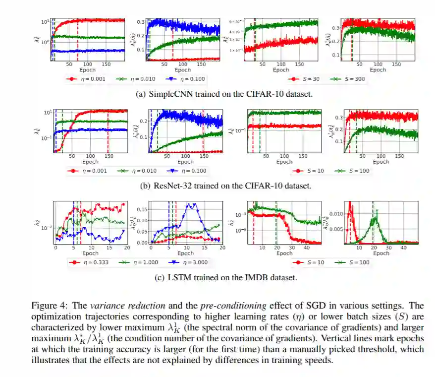 深度神经网络的早期训练对其最终性能至关重要。在这项工作中,我们研究了在训练初期使用的随机梯度下降(SGD)超参数如何影响优化轨迹的其余部分。我们认为在这条轨迹上存在“盈亏平衡点”,超过这个平衡点,损失曲面的曲率和梯度中的噪声将被SGD隐式地正则化。特别是在多个分类任务中,我们证明了在训练的初始阶段使用较大的学习率可以减少梯度的方差,改善梯度的协方差条件。从优化的角度来看,这些效果是有益的,并且在盈亏平衡点之后变得明显。补充之前的工作,我们还表明,使用低的学习率,即使对于具有批处理归一化层的神经网络,也会导致损失曲面的不良适应。简而言之,我们的工作表明,在训练的早期阶段,损失表面的关键属性受到SGD的强烈影响。我们认为,研究确定的效应对泛化的影响是一个有前途的未来研究方向。
