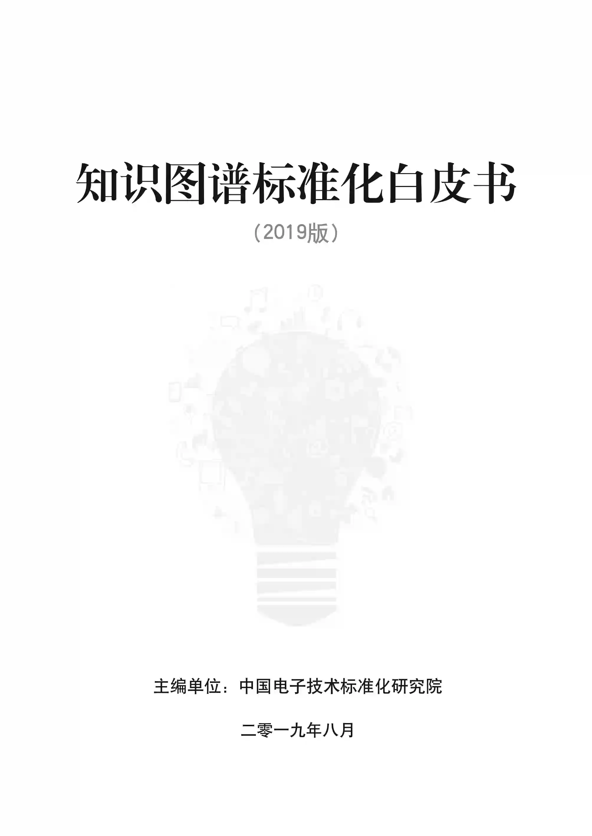 《知识图谱标准化白皮书》(2019版)由中国电子技术标准化研究院联合中电科大数据研究院有限公司、东软集团股份有限公司、联想(北京)有限公司、南华大学、星环信息科技(上海)有限公司、上海思贤信息技术股份有限公司、成都数联铭品科技有限公司、阿里巴巴网络技术有限公司等21家知识图谱领域相关开发商、系统集成商、用户企业、科研院所、高校联合编写。
