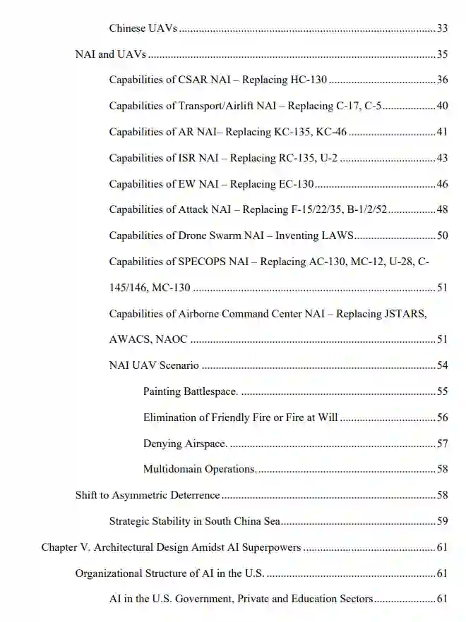 第四章研究了军事航空如何纳入NAI以及自主无人机将如何改变战斗空间。本章重点关注美国已经在进行的具体人工智能进展,并将其应用于空域,以解释天空中的狭义人工智能是如何成为首次打击和保持对对手的战略优势的关键。