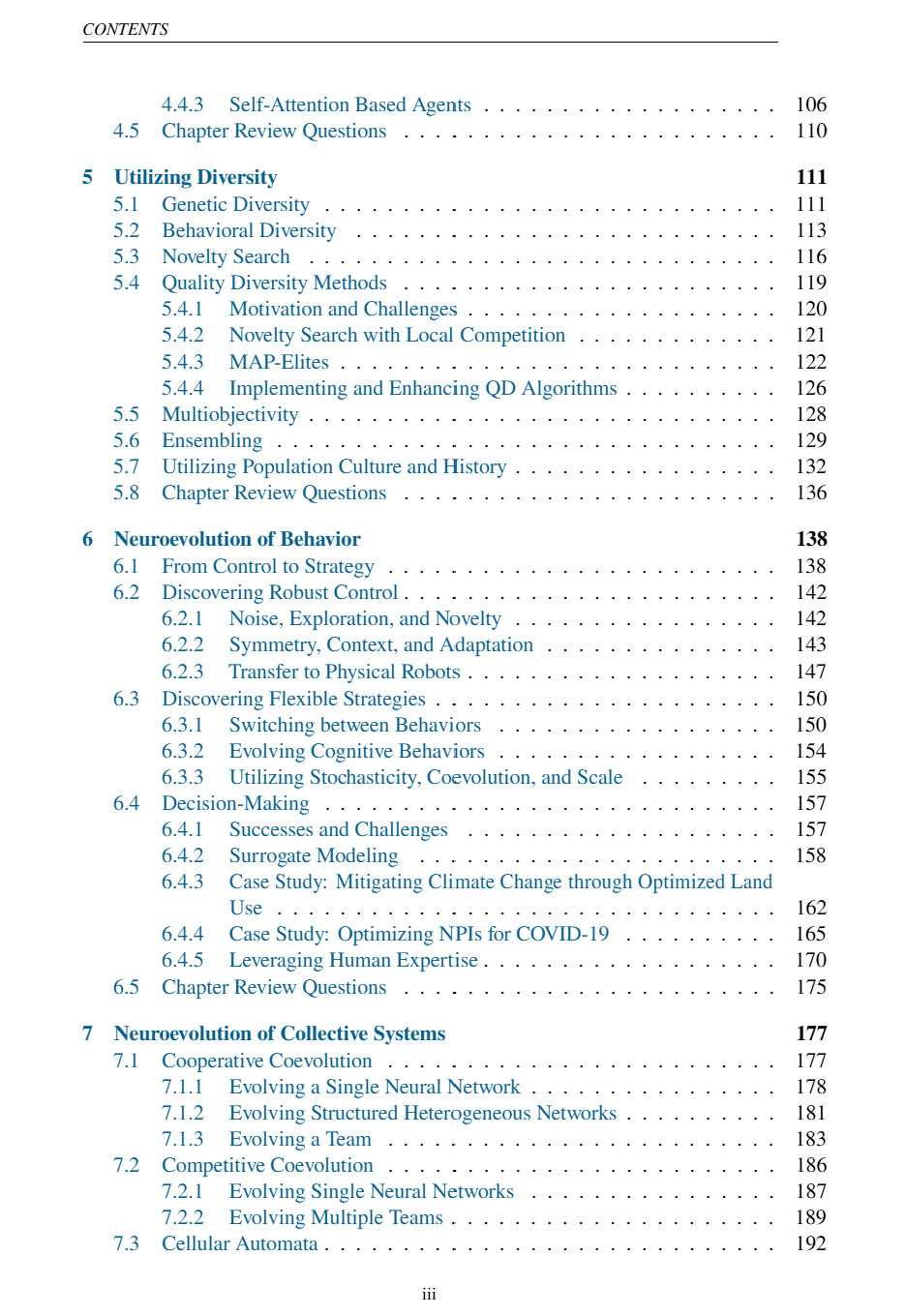 神经演化(Neuroevolution),即通过进化计算优化神经网络,自 1990 年代以来一直是机器学习领域中不断发展的一个重要分支。其主要关注点在于:当训练目标未知、且良好性能依赖于跨时间的多步决策时(如机器人控制、游戏博弈与决策制定),如何为智能体进化出高性能的神经网络。近年来,神经演化的研究范围进一步扩展到深度学习架构优化、生物智能演化机制的理解,以及面向硬件实现的神经网络优化。 本书将向学生介绍神经演化的基础知识,随后深入探讨多项使神经演化更高效、更通用的高级主题,回顾典型应用领域,并提出未来研究问题。书中还通过一个基于 Python 的软件平台提供动手实践,包括动画、交互式演示、练习与项目环境。我们希望你能从中获益!
