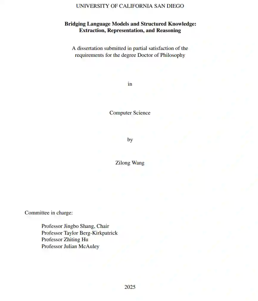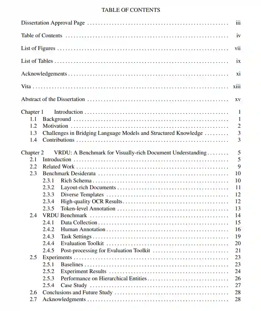 首先,我们提出了 VRDU ——一个用于富视觉文档理解(Visually-Rich Document Understanding)的基准数据集,旨在评估模型如何从具有复杂布局和层次实体的商业文档中抽取结构化信息。VRDU识别了模板泛化与小样本自适应中的关键挑战,为多模态语言模型提供了更现实的评估标准。 其次,我们引入了 LASER,一种面向小样本实体识别的标签感知序列到序列框架。该方法将标签语义与空间关系直接嵌入解码过程,使模型能够在监督信号极少的情况下识别文档图像中的实体,在低资源场景下优于传统的序列标注方法。 在网页挖掘方面,我们提出了 ReXMiner,一个零样本关系抽取框架,能够捕捉半结构化网页中的结构依赖关系。ReXMiner 通过在DOM树中编码相对XML路径,有效提升了关系抽取在不同网页模板上的泛化能力,验证了结构信号对于网页信息抽取的重要价值。 最后,我们提出了 CHAIN-OF-TABLE框架,用于基于表格的数据推理,通过迭代表格变换以实现动态推理。区别于将表格视为静态输入的以往方法,CHAIN-OF-TABLE 支持结构化转化过程中的逐步推理,在多个表格问答与事实验证任务上达到了最新的性能表现。 综合来看,本论文重新定义了语言模型与结构化知识的交互方式,填补了非结构化文本处理与结构化数据推理之间的鸿沟。通过融合多模态信号、关系结构与迭代推理机制,本研究为构建更加稳健与具备泛化能力的结构化知识理解模型奠定了理论与方法基础。