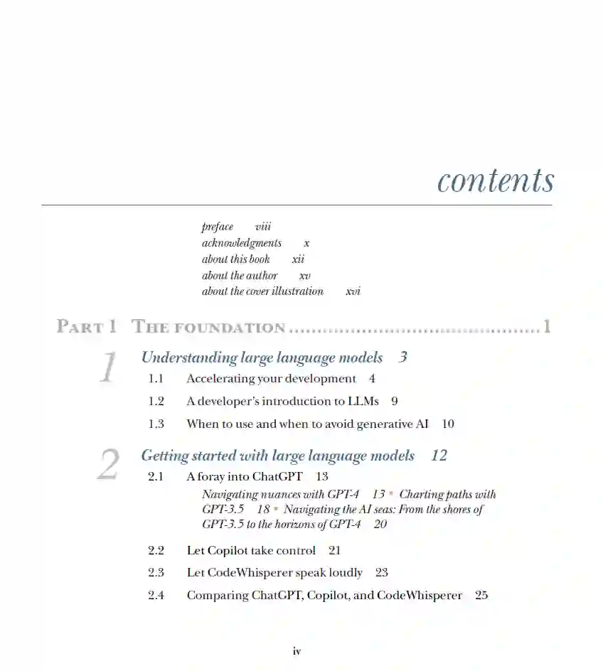 第二部分3. 使用ChatGPT设计软件 4. 使用GitHub Copilot构建软件 5. 使用GitHub Copilot和Copilot Chat管理数据 第三部分6. 使用大型语言模型进行测试、评估和解释 第四部分7. 编写基础设施代码并管理部署 8. 使用ChatGPT进行安全应用开发 9. GPT随行 附录A. 设置ChatGPT B. 设置GitHub Copilot C. 设置AWS CodeWhisperer 关于作者