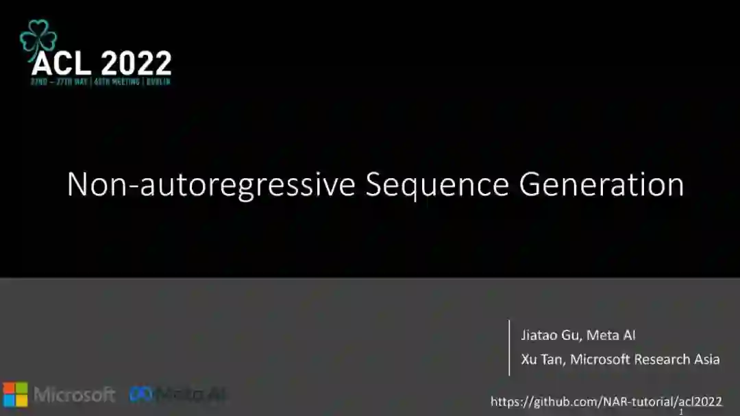 非自回归序列生成(Non-autoregressive sequence generation, NAR)尝试并行生成全部或部分输出序列,以加速生成过程,避免自回归生成中潜在的问题(如标签偏差、暴露偏差)。虽然它受到了大量的研究关注,并已被应用于自然语言和语音中的许多序列生成任务,但由于缺乏建模能力,原始NAR模型在缩小与最先进的自回归模型之间的性能差距方面仍面临许多挑战。在本教程中,我们将全面介绍和回顾非自回归序列生成,分为四个部分:1)背景,包括NAR生成的动机,问题定义,评估协议,以及与标准自回归生成方法的比较。2)方法,包括不同的方面:模型架构、目标函数、训练数据、学习范式和额外的推理技巧。3)应用,涵盖了文本和语音生成中的不同任务,以及应用中的一些高级主题。4)结论,我们描述了几个研究挑战,并讨论了潜在的未来研究方向。我们希望本教程可以服务于从事非自回归序列生成的学术研究人员和行业从业人员。