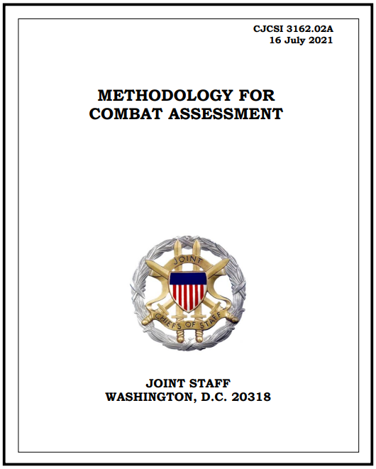 本指令确立了对以下组成部分进行战斗评估 (CA) 的方法:战斗损害评估 (BDA)、附带损害评估 (CDA)、弹药效能评估 (MEA) 和再攻击建议 (RR)。它为分析师提供 CA 所需的报告定义、方法和原则。它弥合了联合出版物 (JP) 和作战司令部 (CCMD) 的 CA 计划中提供的条令指导之间的差距。