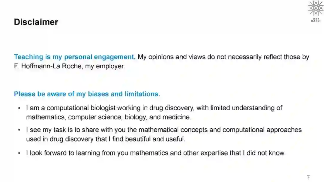本系列课程以数学为语言,以信息学为工具,介绍药物发现的跨学科研究