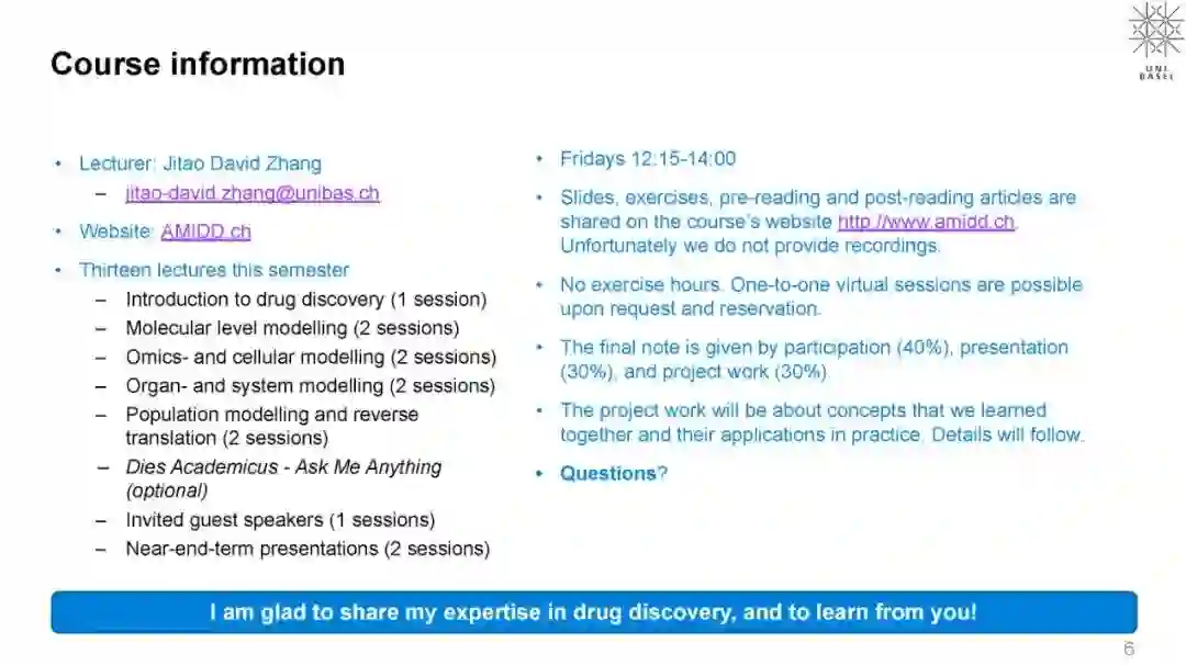 欢迎访问药物发现中的应用数学和信息学(AMIDD)网站,该系列课程将于2022年秋季学期在巴塞尔大学数学和信息学系开设。