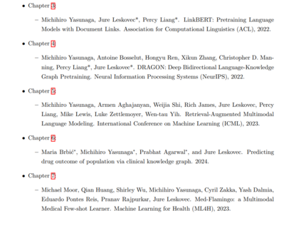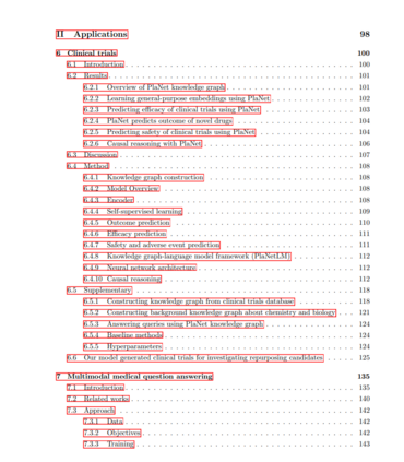 语言模型,如GPT-4,具有生成对用户查询的文本响应的能力。它们被用于各种任务,包括问答、翻译、摘要和个人助理等。然而,为了创建更多功能的人工智能助手,这些模型需要处理更多样化和复杂的任务,涉及领域或视觉知识,如回答医疗问题以及解释或生成图像。这种需求促使了开发能够访问并利用文本之外的多样化知识源的模型,如数据库和图像。在本论文中,我们旨在开发能够利用多模态知识的语言模型,包括文本、知识图谱和图像,以解决各种用户查询。文本提供广泛且富有语境的知识,知识图谱通常提供结构化的领域知识,而图像则促进各种视觉应用。本论文共有五章。第一章介绍语言模型如何有效地从文本数据中学习知识的方法。具体来说,我们在一系列相关文档上训练语言模型,鼓励它们学习和推理具有长期依赖性的知识。这种方法在复杂的长上下文和多步推理任务上表现出强大的性能。在第二章中,我们介绍了使语言模型能够利用知识图谱信息的方法。具体来说,我们开发了一种新的模型架构,结合了语言模型和图神经网络,以及一个融合文本和知识图谱表征的训练目标。这种方法在涉及领域知识的任务上表现出强大的性能,如医疗问题回答。在第三章中,为了使语言模型能够在文本信息旁使用和生成视觉内容,我们设计了能够编码、检索和解码文本和图像交织序列的统一多模态模型。该模型采用检索器来获取文本或视觉知识,并将其整合到一个多模态变换器中,该变换器使用标记表示同时编码和解码文本和图像。最后,在第四和第五章中,我们展示了将文本、结构化和视觉知识融合技术应用于解决实际医疗任务的情况,包括临床试验结果预测和多模态医疗问题回答。总之,本论文构建了能够理解和生成多模态内容的模型,涵盖了文本、知识图谱和图像。